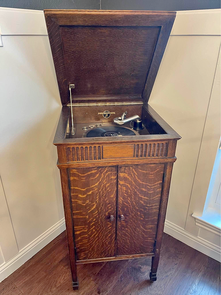 Note that the "speaker still works." Just think, after all these years! They don't make 'em like they used to. (After all, it's a "Gram-a-phone")