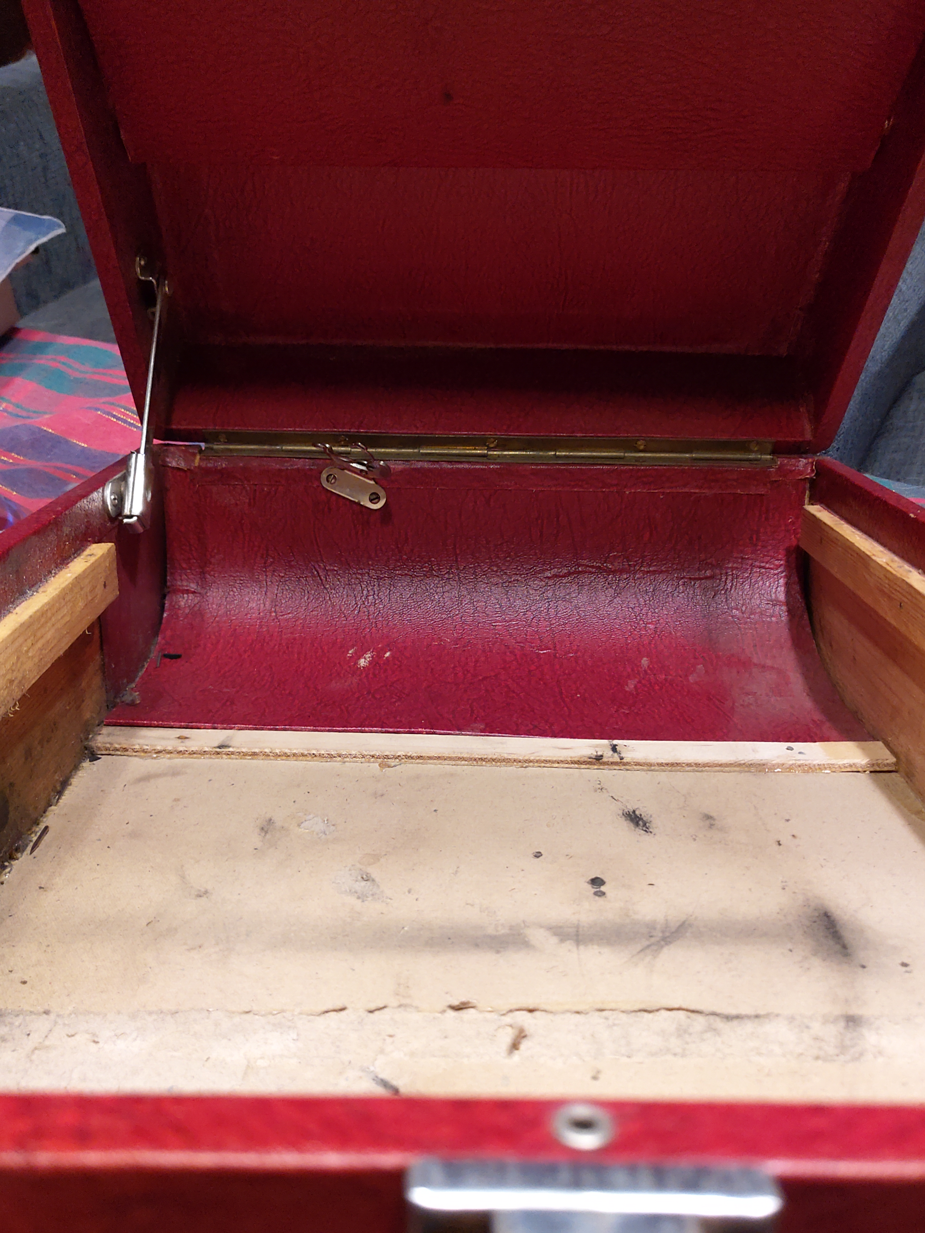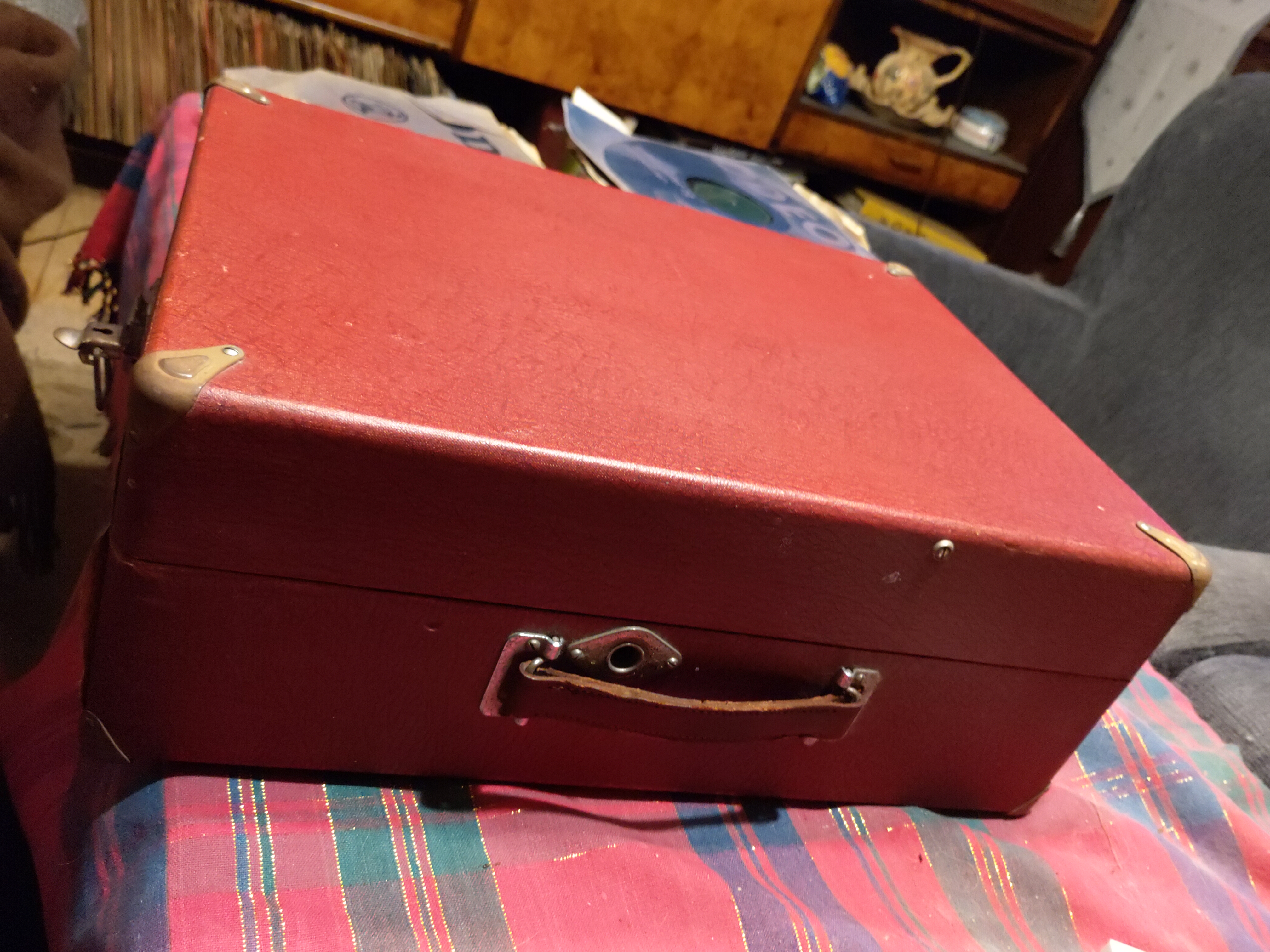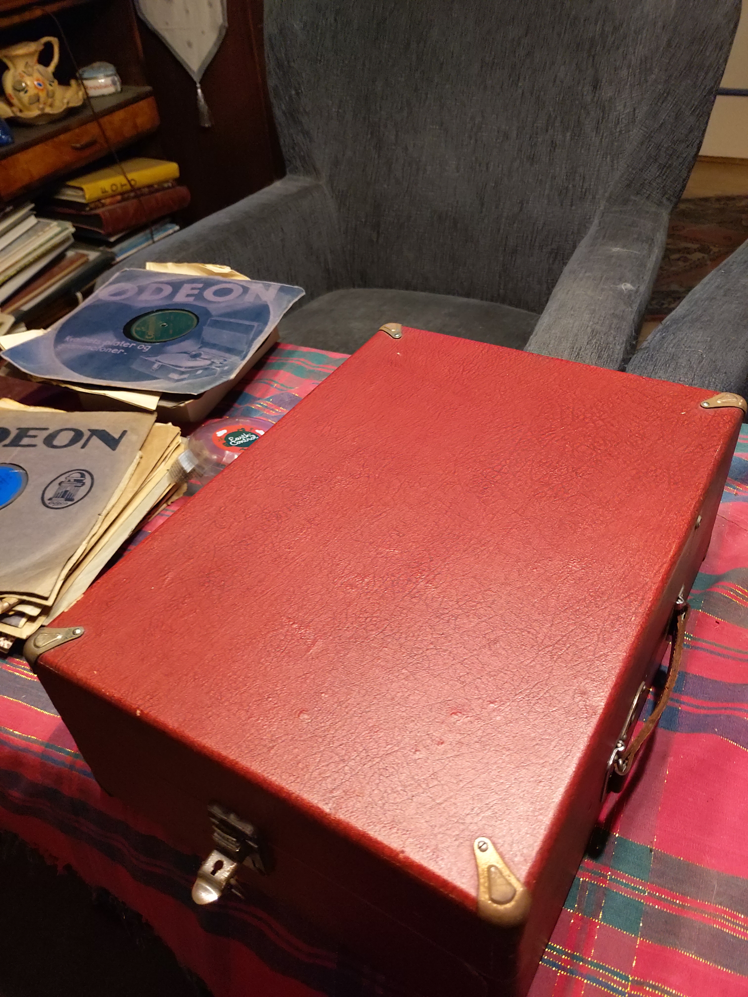 The only small problem with this nice machine is that the spring is bumping because of hardened grease, but that will be taken care of during the upcoming holiday, apart from it, it looks very nice and solid. The swiss Thorens manufacture is reliable as we know, and the parts are in excellent condition. The red color adds to it, in particular since I don't really own any nice red portables yet, the ones I have, are scarred.
