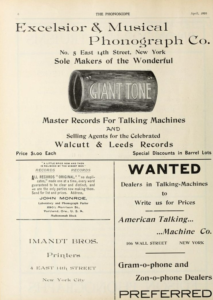 If this ad is from July 1900, when were Zonophones being produced in a great enough quantity that the National Gramophone Company could actually take out advertisement such as this? I know there are a lot of Zono geeks out there who are smarter than me (George P.) Looking forward to hear from you.
