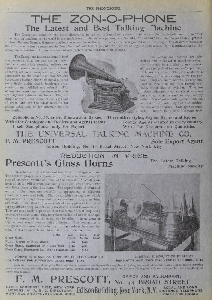 Although Frank Seaman played fast and loose with the name of Zonophone (since early 1898, but first simply as an alternate term for Berliner's Gramophone), frequently confusing even other advertisers in the Phonoscope, there were no actual Zonophone machines as we know them, in 1899 (in the marketplace).