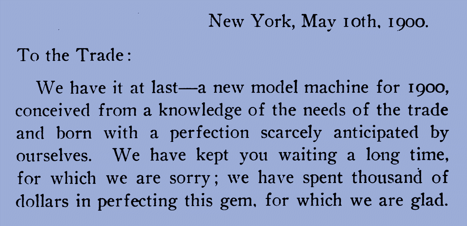 I've heard this before and do agree that it is a factually correct statement. However, no one was asserting the production date of the machine , only citing when the first ads appeared in the Phonoscope. Many publications, both then and current, have content that is produced months different than the publish date. Production dates require factory documentation to truly pinpoint. Period magazines provide good content that helps in research and is considered primary source documentation to be used to help triangulate to the real story.