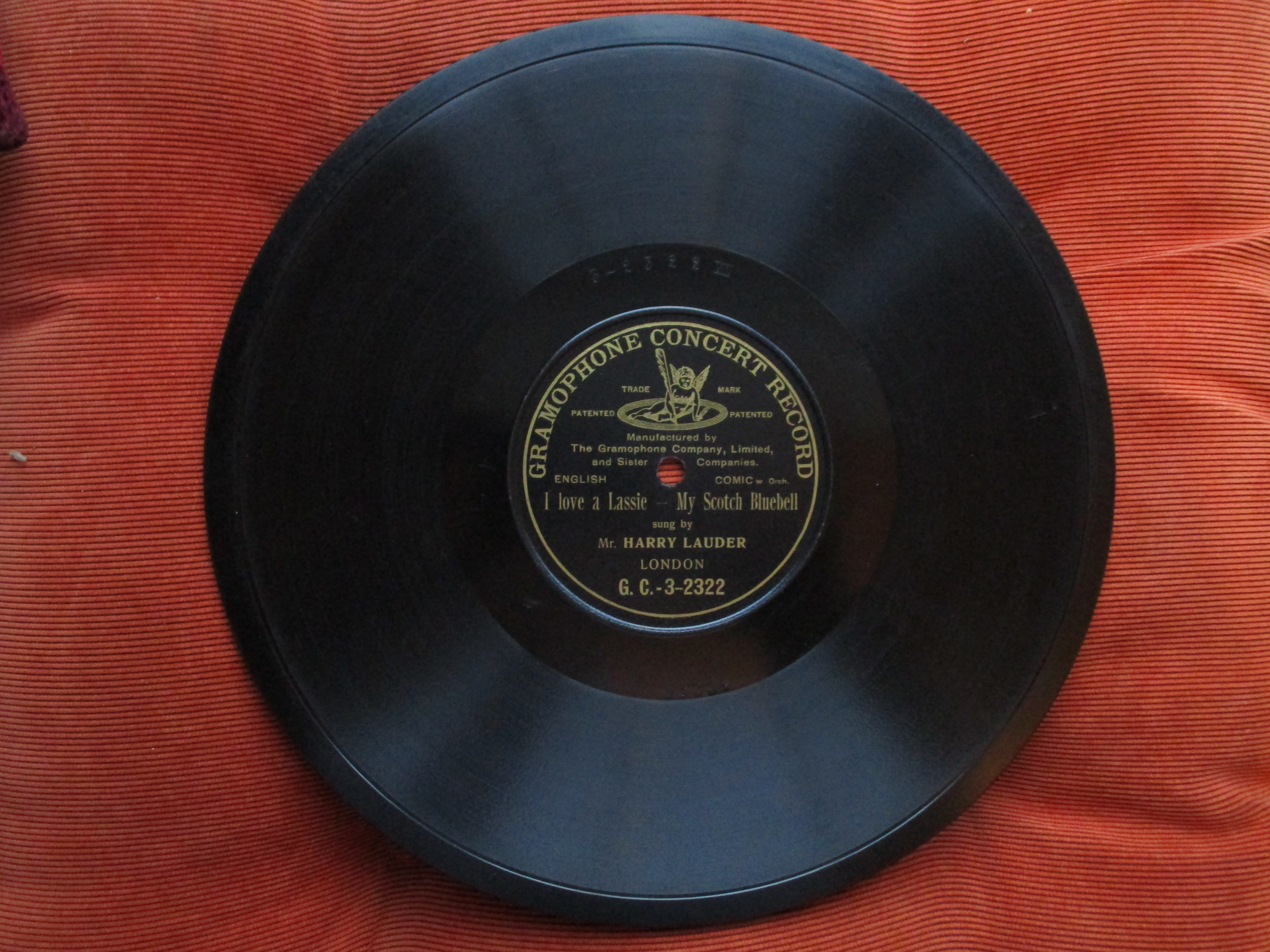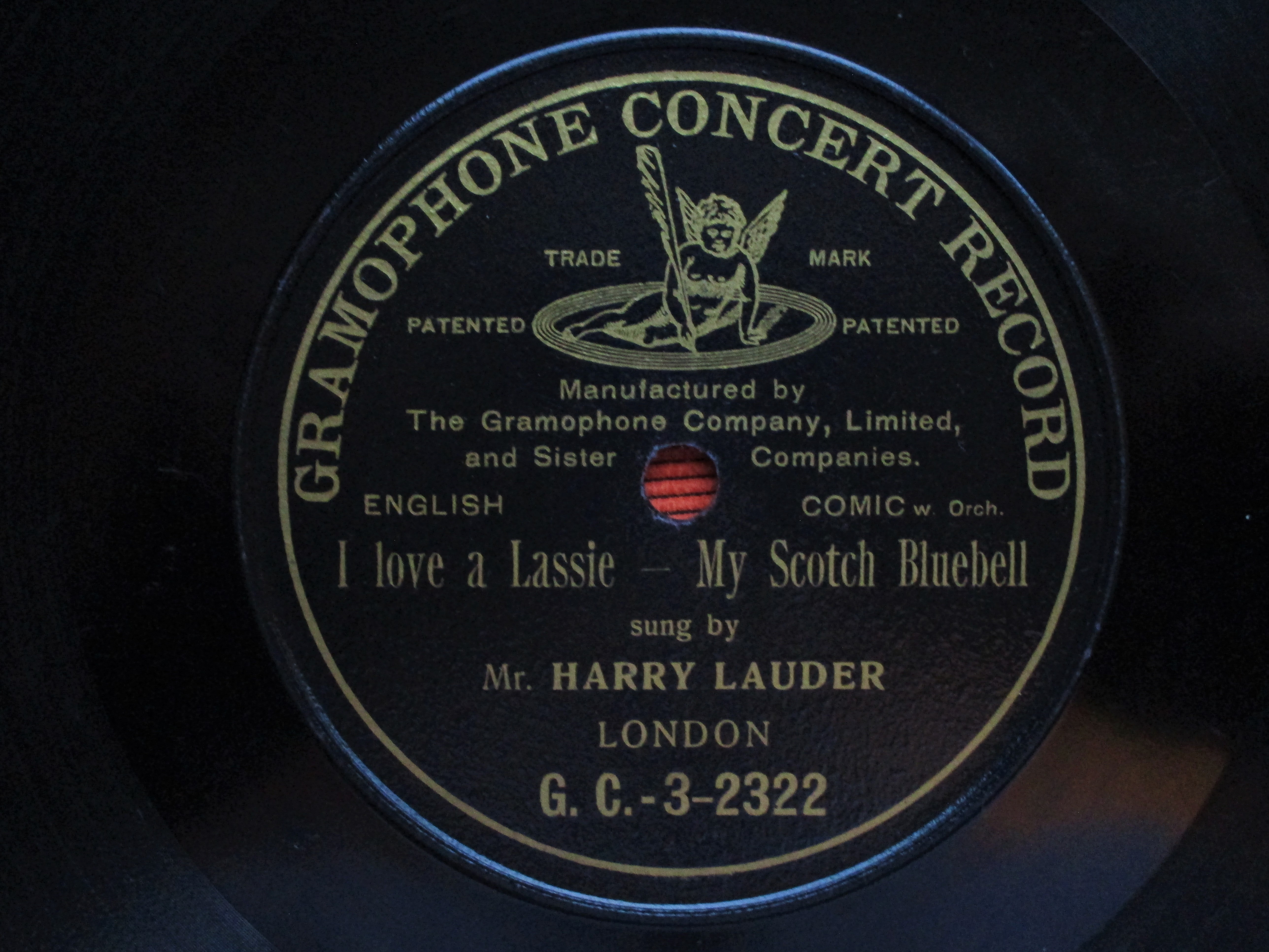 2. Exceedingly uncommon early "Mr. Harry Lauder" on Gramophone & Typewriter label with "I LOVE A LASSIE ~ MY SCOTCH BLUE BELL" $100 pretty sweet condition with scattered very light scuffs