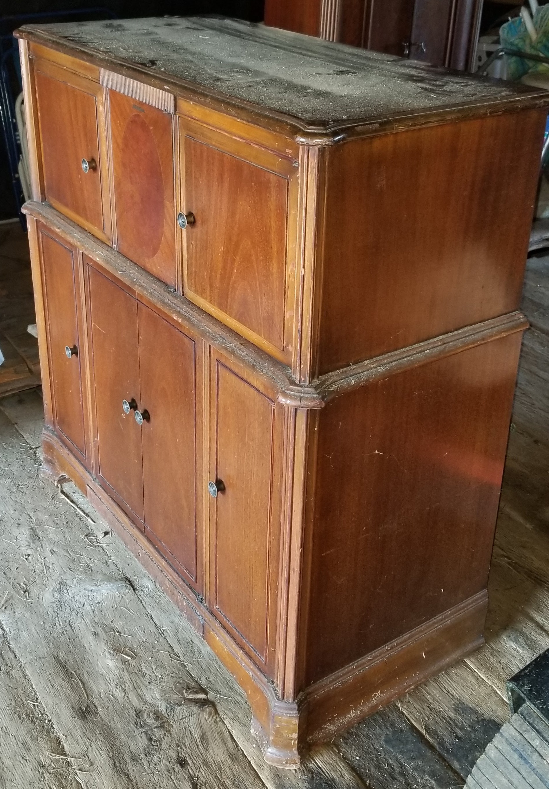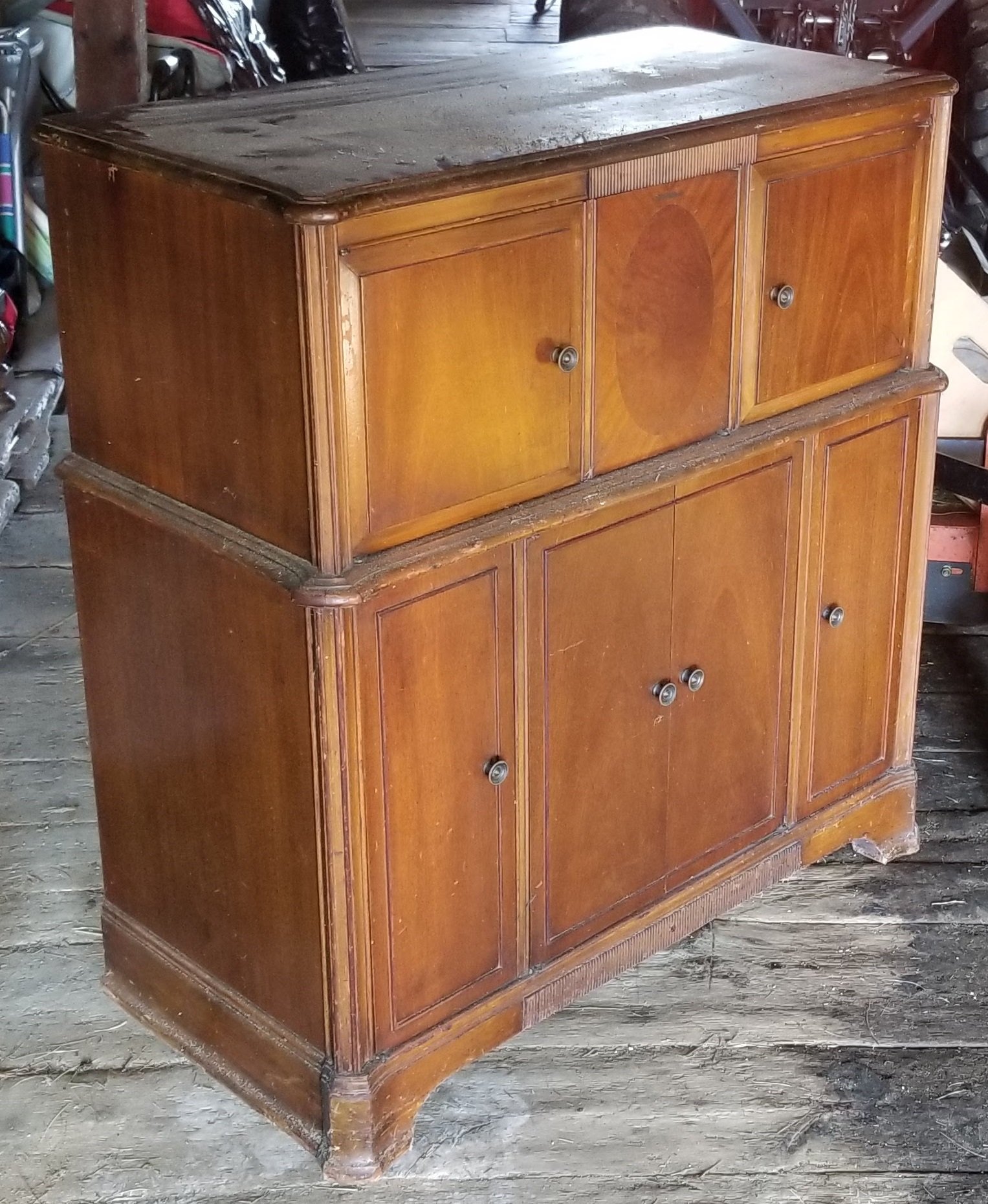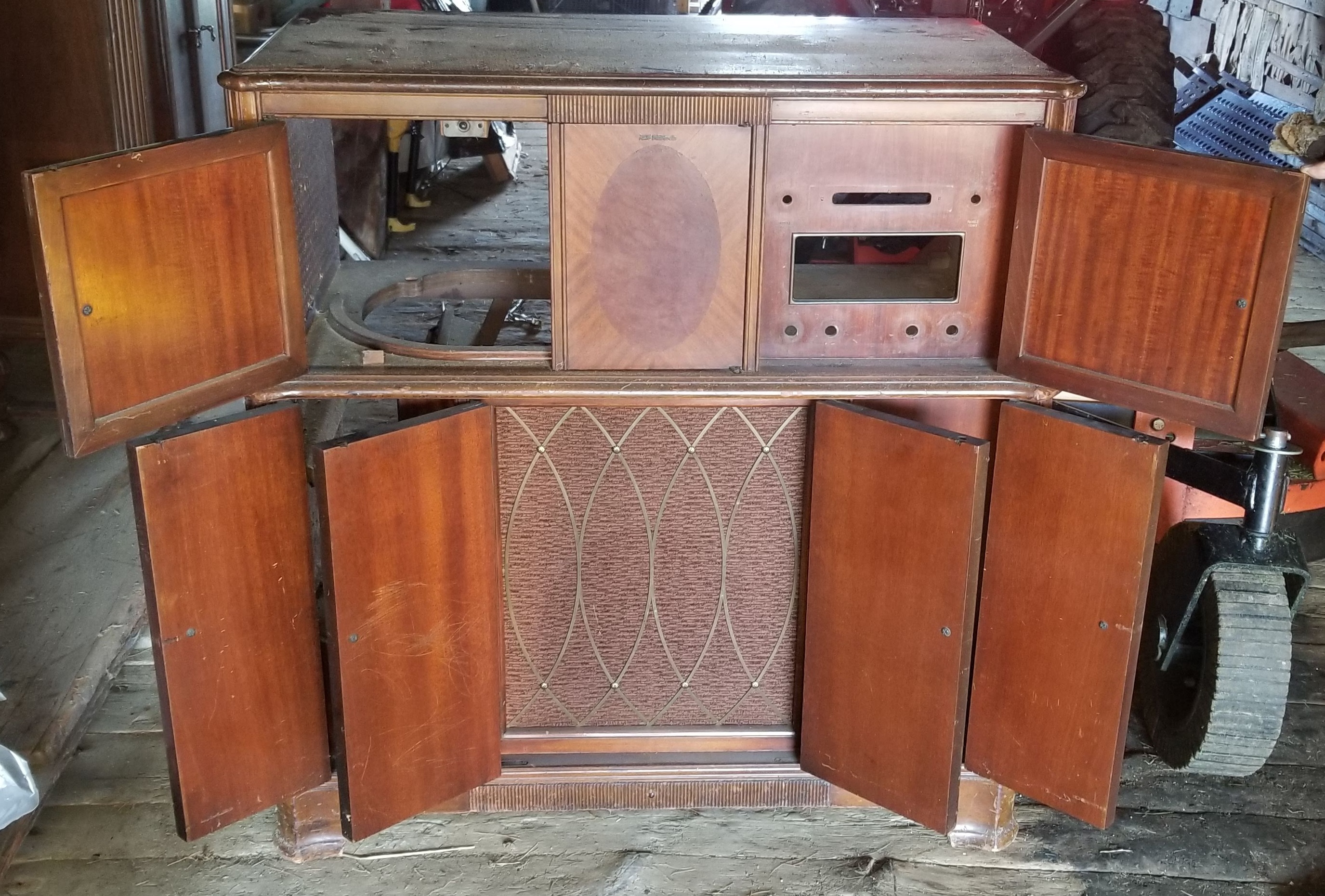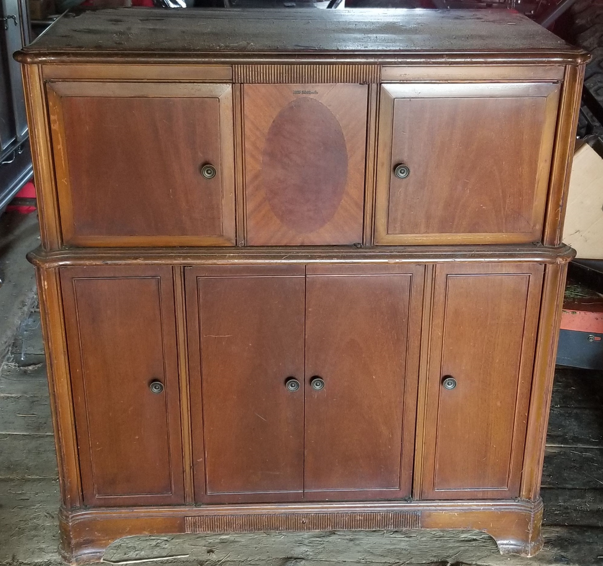 I have an empty cabinet for a 1941 RCA Model V-225 radio/phonograph, the one with the legendary changer that played both sides of a record without turning it over. It's complete (including all the door pulls) and in nice, all-original condition. (See pictures.) If you have one that you're hoping to restore but its cabinet is rough (or beyond salvation), this could be a good opportunity for you; I've never seen another in any condition one for sale anywhere, at any price.