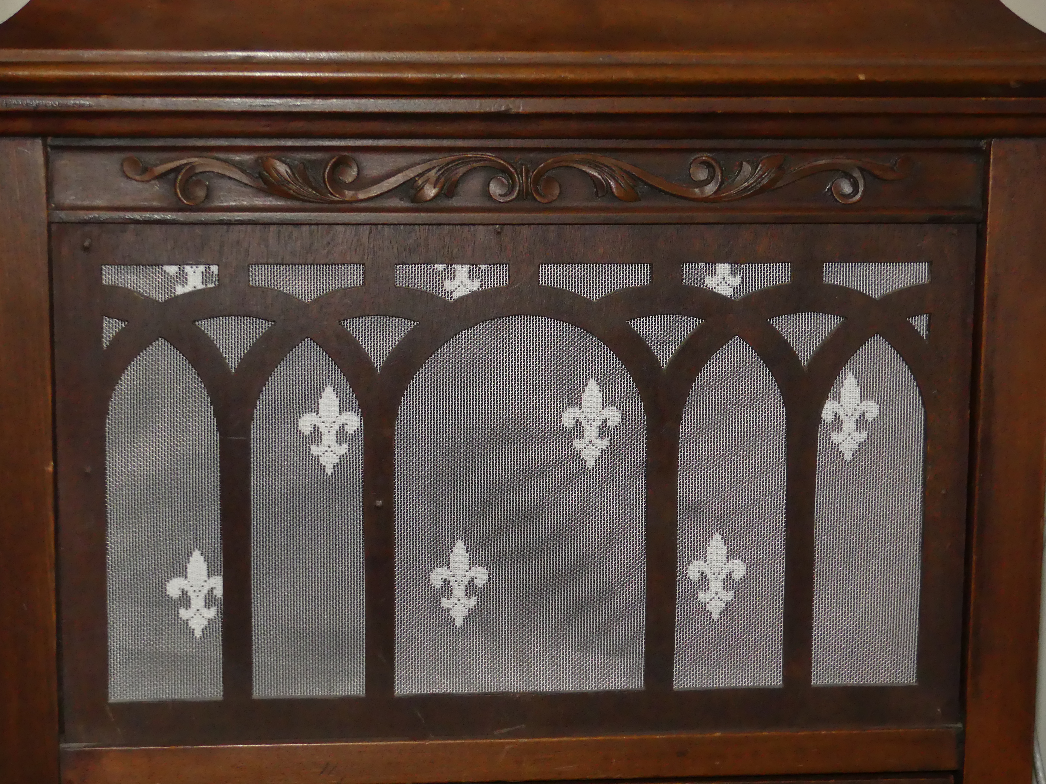 randymullx wrote: Sat Jan 08, 2022 5:03 pm I saw a posting recently where someone else had been trying to locate a grill for a Pathé Model 100 for years with no luck. I finally gave up and decided to see if I could create a reproduction and thought I would post the results in case it helps out someone else. My 100 is oak and is a very early version (it does not have a separate motor board or the universal tonearm…..mine has the early tonearm that was supplied with separate reproducers for vertical and lateral). Hopefully the dimensions for the grill are the same but that should be easy to confirm. I ordered some red oak ¼” plywood from Rockler but the actual thickness was about 5/32” so I glued two pieces together to get the thickness I wanted. I made the outer piece full size per the attached drawing but the inner piece is ¼” less on the bottom and ⅜” on the top which allows the grill to easily slip into the top and bottom grill slots in the cabinet. I scaled the dimensions as best I could from Model 100 photos. I’m not an accomplished woodworker and it took me months to complete. Now if I can just figure out what color the grill cloth should be.