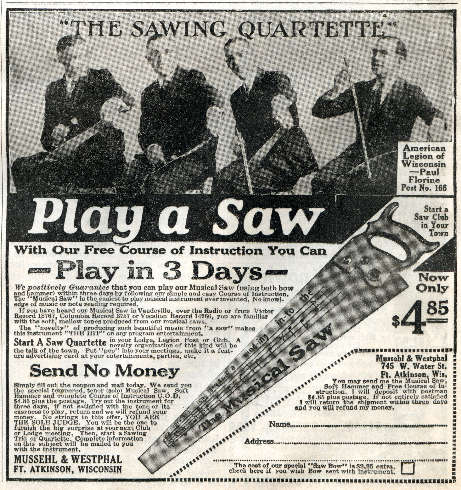 Mussehl & Westphal --- The Musical Saw Advert., in The American Legion Monthly, p. 19, 01-16-1925.jpg