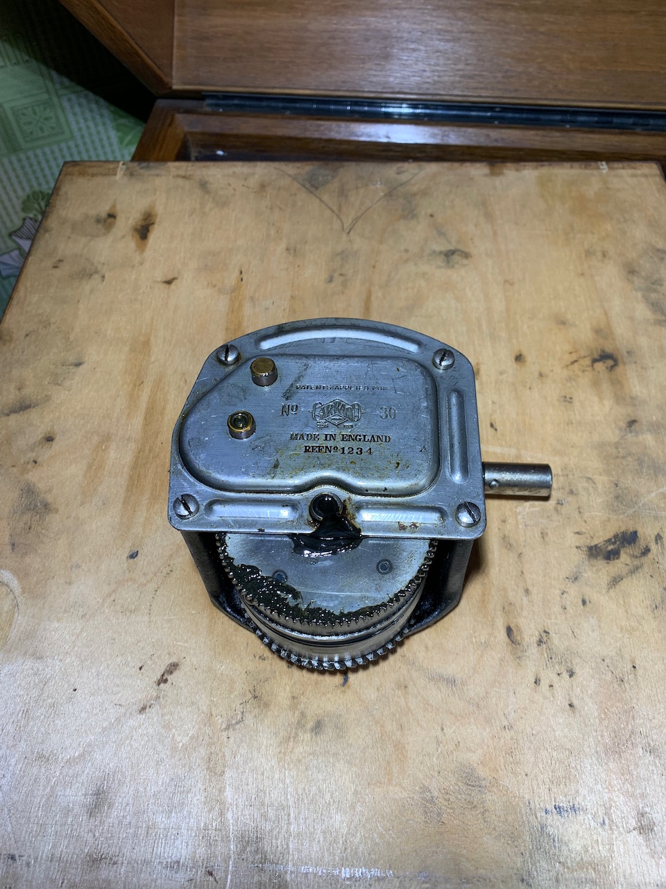 I am attaching some photos to show the existing Garrard 30 motor in situ. In my opinion (and I have collected many phonographs), the motor is lightweight for the task at hand, requiring many many cranks with relatively little resistance to get it fully wound. I had read of EMG/Expert's upgrade paths back in the day to a good electric motor such as my 201v, so I would like to perform that upgrade with a new motor board, thus preserving the existing board and motor without damage. The issue though is that the motor arrived non-functioning. I hope my electric-motor-repairing-cousin can deal with that although he would no doubt be most grateful if a service manual were to surface.