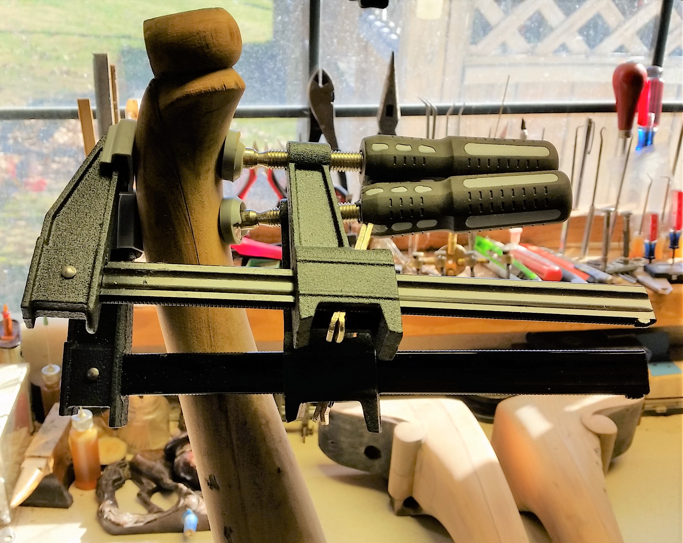 First I had to re-glue the splits which were in the jointing layers of the wood. I used my veneer saw to clean out any old glue and dirt from the split. Then worked new glue into split with a glue syringe and pallet knife and clamped them to dry.