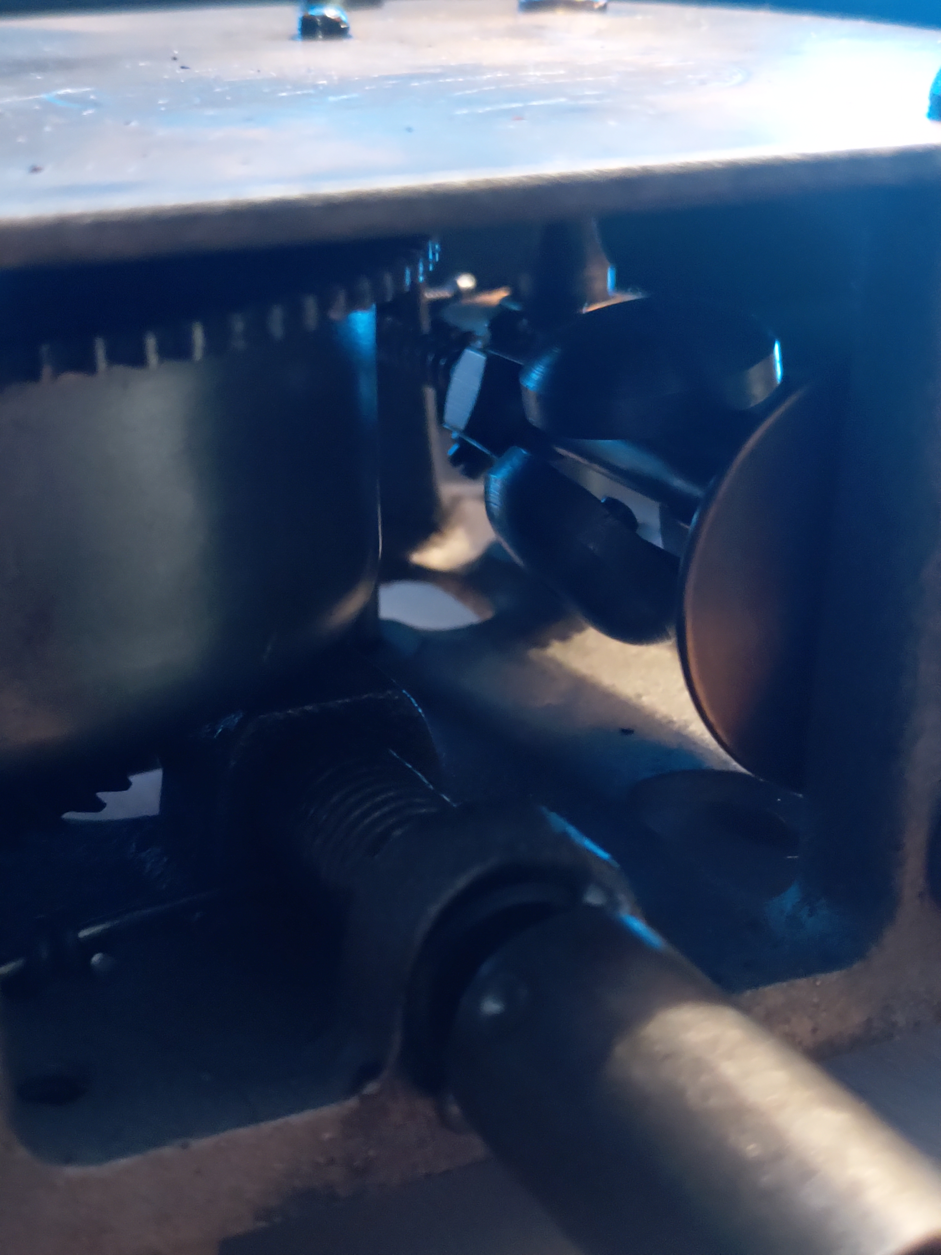 I found a small ball bearing inside the horn, and it must belong in the tone arm, since the tonearm is somewhat loosely fastened to the base. There is a small screw that opens the tonearm/base assembly, I know what awaits me there...a number of small metal balls. Still, I would like to try to get the small ball bearing back in position, if possible.