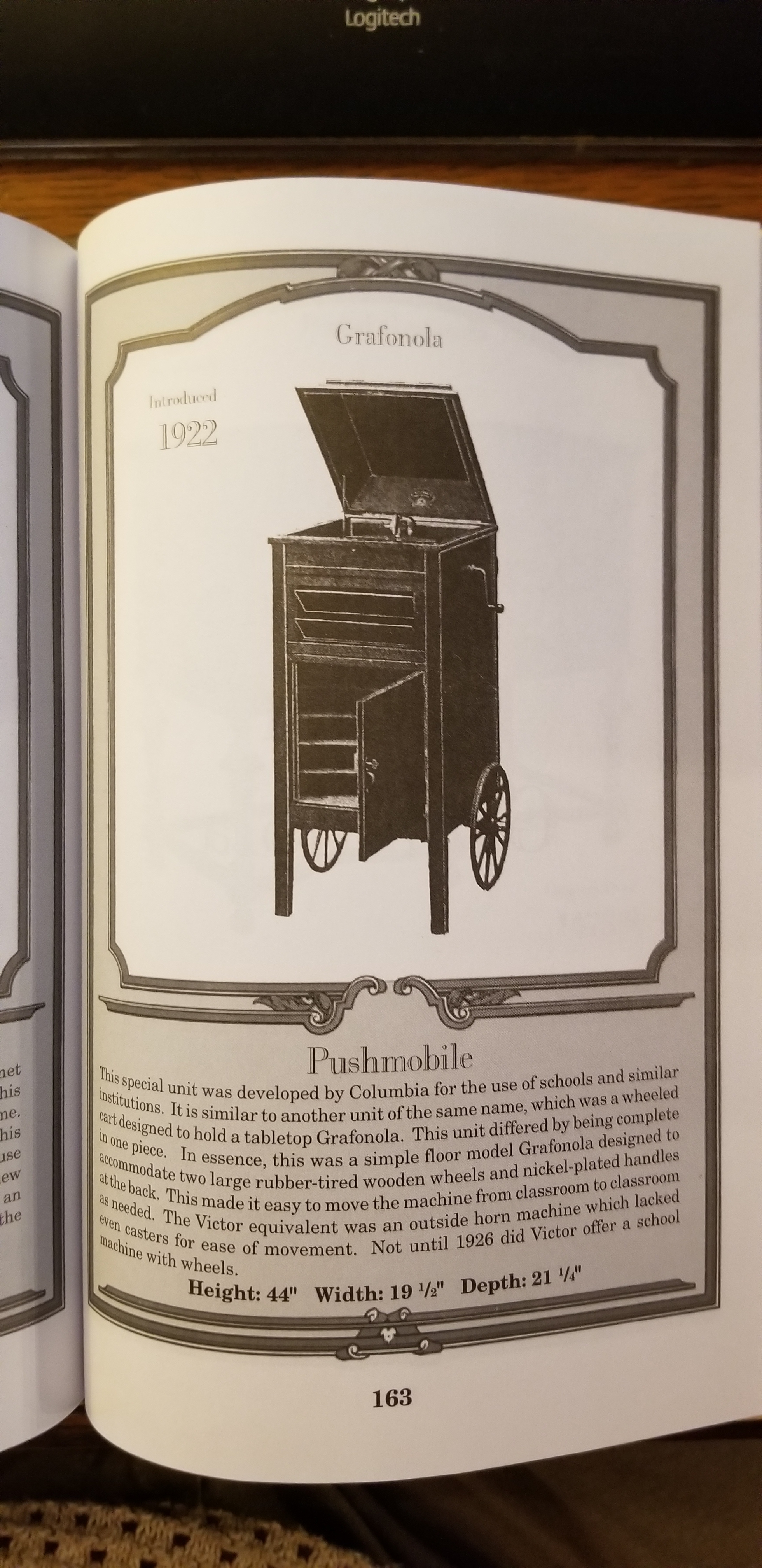 Slightly different cabinets. Louvers are horizontal on one, vertical on the other, as well.fran604g wrote: Tue Feb 01, 2022 11:07 am School model? AKA "Pushmobile" it would seem. Image from Columbia Phonograph Companion Volume II, Robert W. Baumbach, Stationary X-Press, 1996.