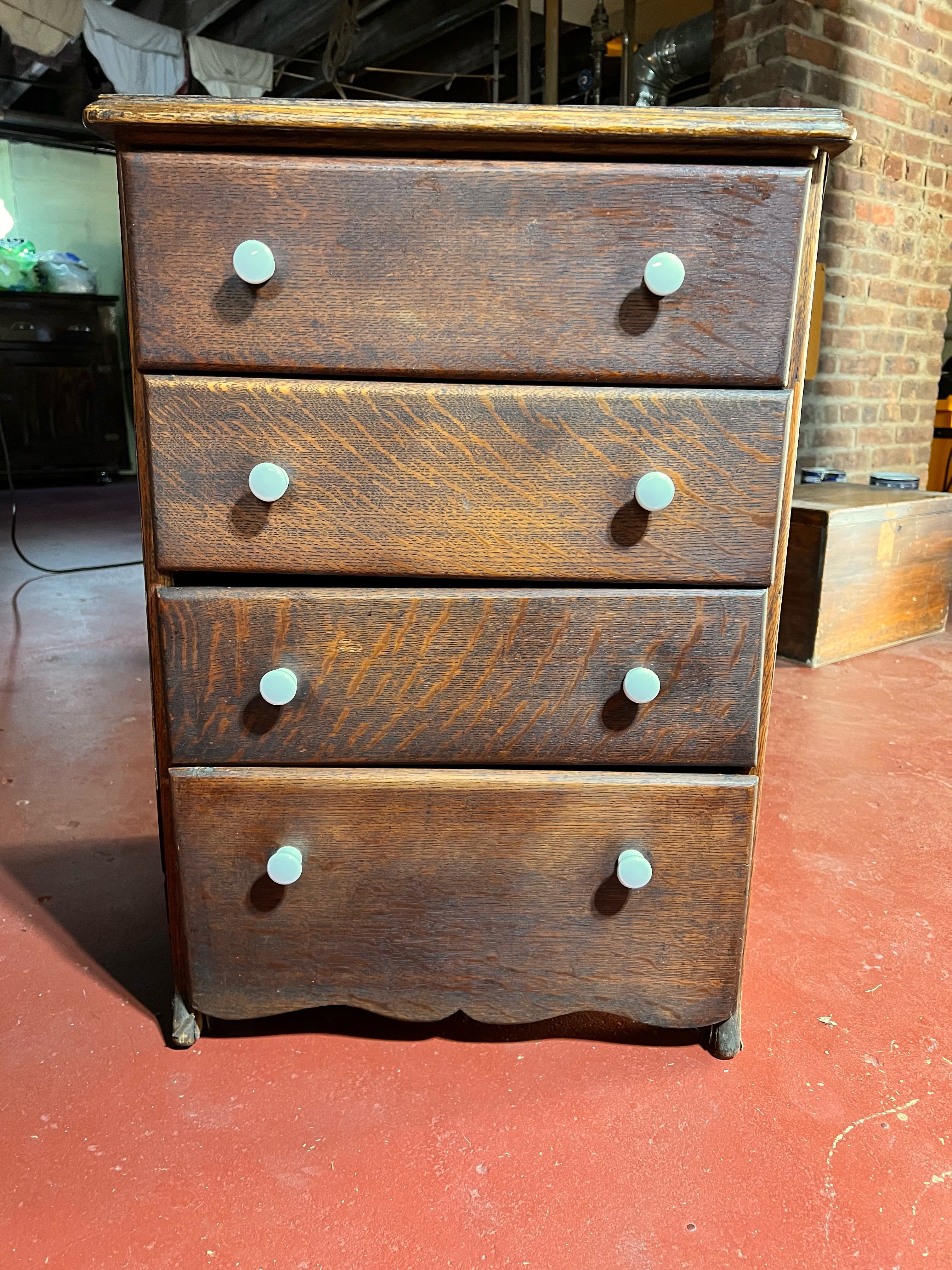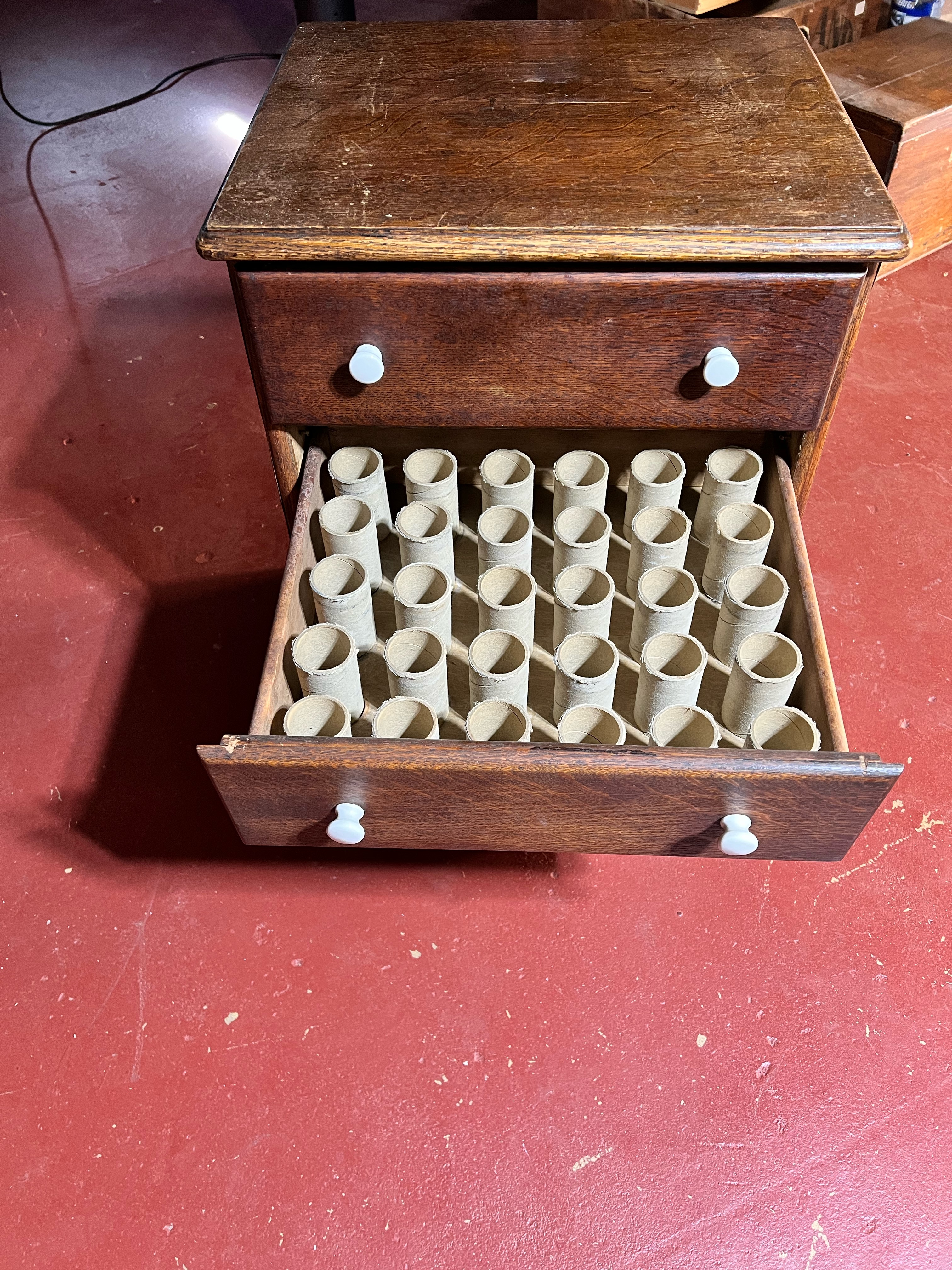 For Sale is a four drawer phonograph cylinder cabinet filled with 120 Edison Blue Amberol Cylinders. The runners on the middle two drawers need repair. Needs to be picked up at my house in Linden NJ or will deliver within 30 miles from my house.