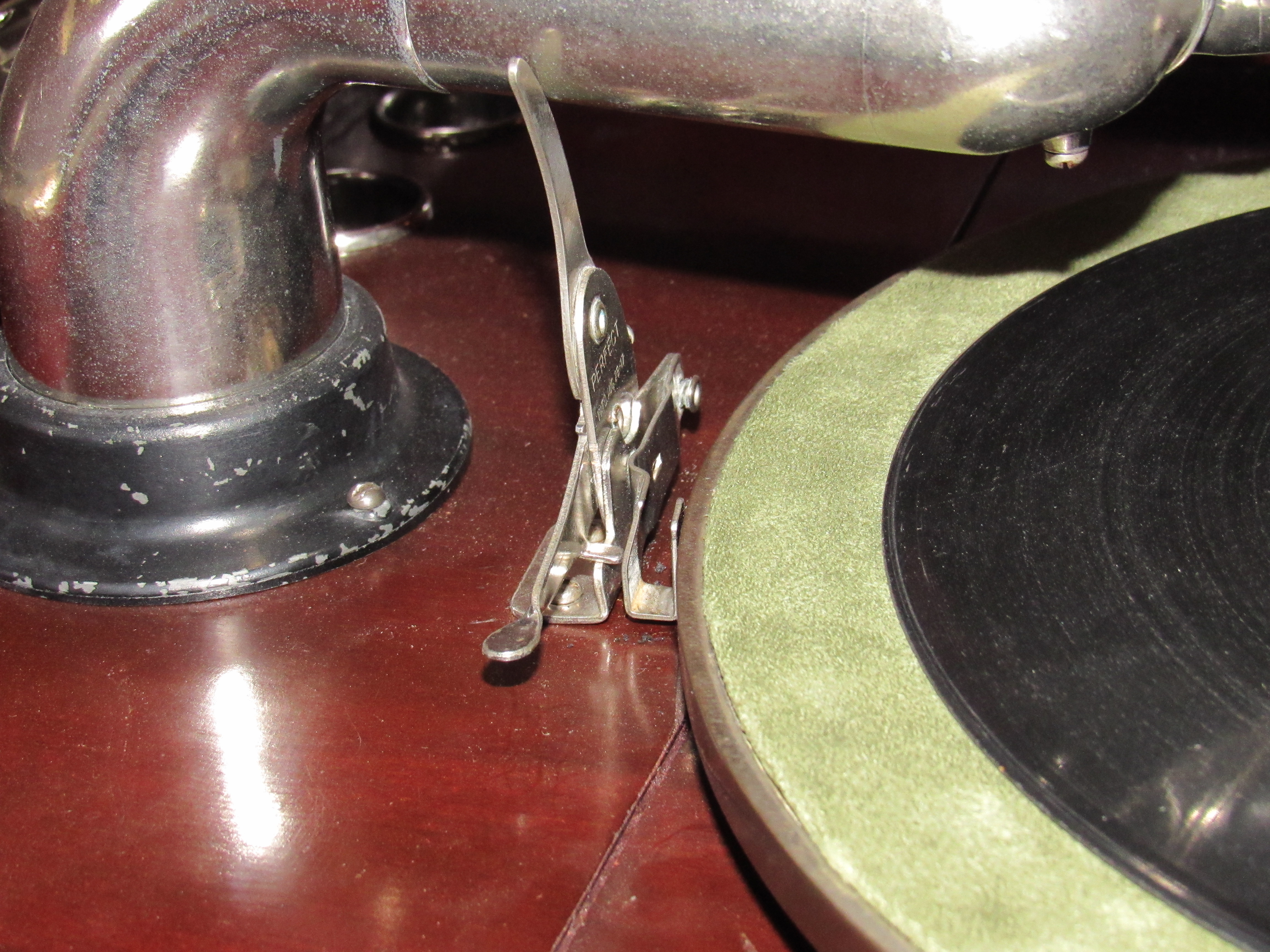 It seems to be complete and I believe it to be an automatic brake of some sort. However, there is nothing attached to the tone arm to trigger it. I don't get it and hope someone can teach me.