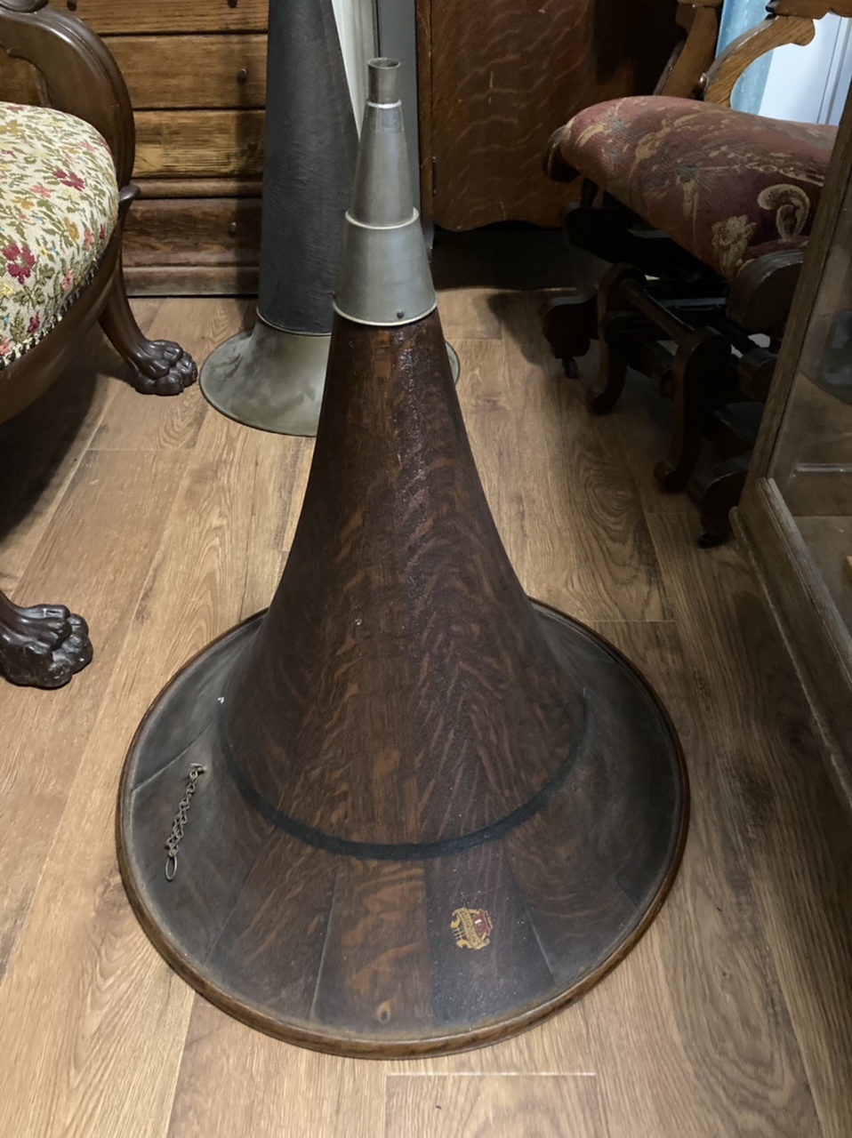 Found in the Wilds of Facebook Marketplace, Early Edison Home 4 latch Suitcase, 2 and 4 minute conversion with Model O Reproducer and Music Master Horn and trunk full of cylinders. It appears to have a “Hilton” Speed Meter. Is that an aftermarket piece? The horn needs a little work, but it has good bones and good decal. I’ve never seen a horn quite like this one. The machine had been passed down through the family, but the current owner didn’t know any history, I may convert it back to a 2 minute machine, opinions welcome.