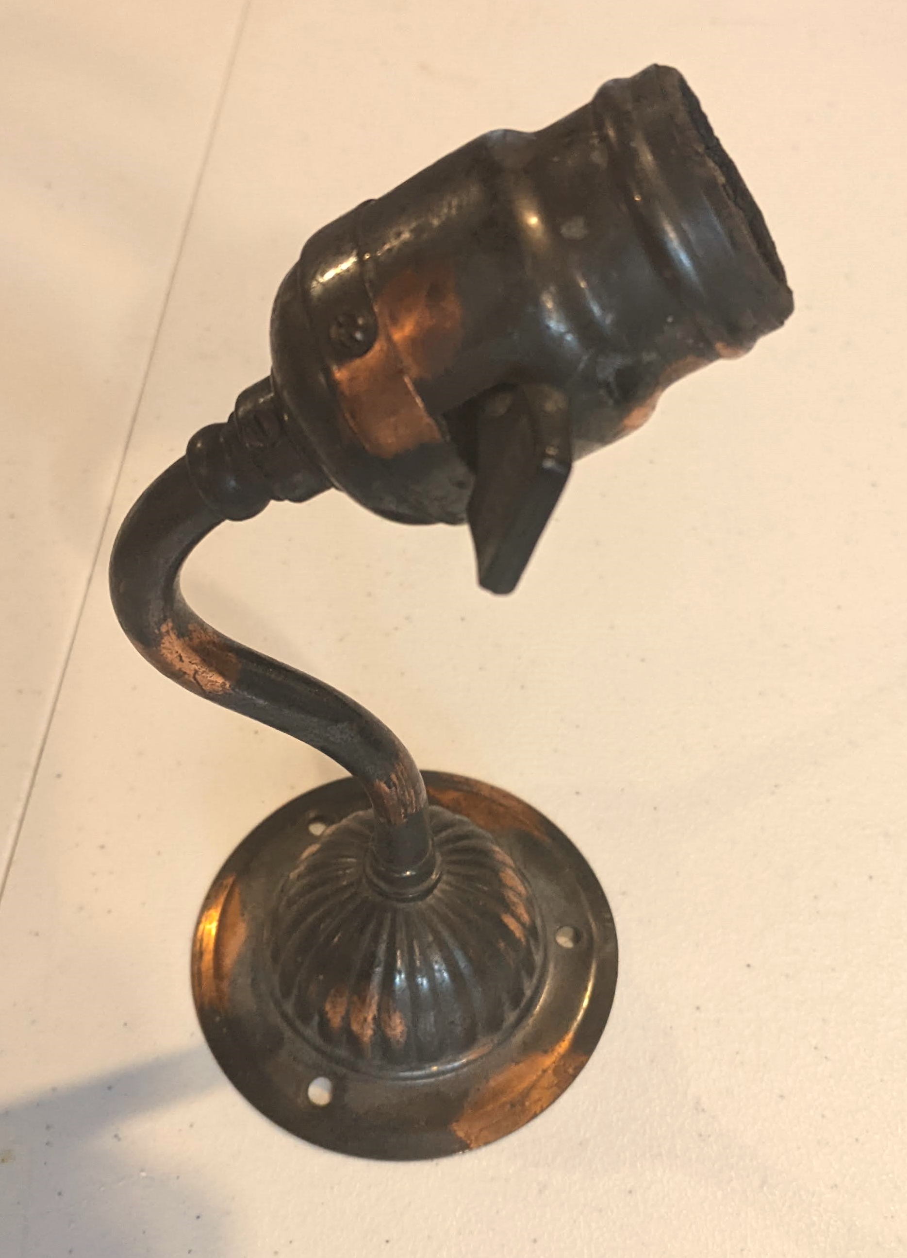 The final one has the highly desired copper flash finish, similar to an Opera! It is a wall lamp only. Even cooler, The socket is marked with Edison - Edison Patents. It needs to be wired, but is in untouched original condition. The price is $150.00