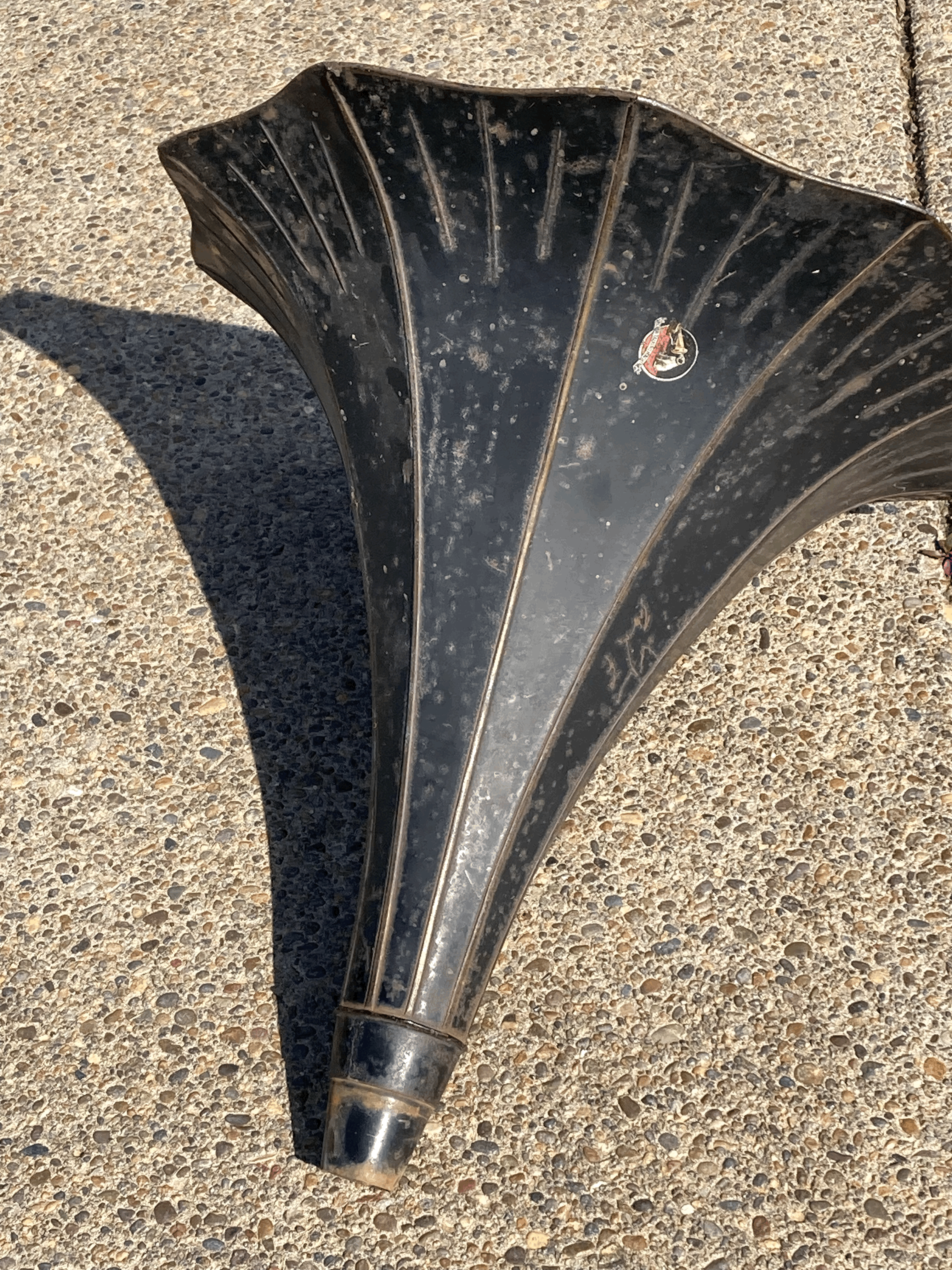 I have a #22 Victor Flower Horn for trade or best offer. It is a very straight horn but does have light surface rust. The #22 was the standard horn on a Victor IV. I really need an original ID tag for a Victor IV but I would consider other offers of cash or trade. I can deliver to the Midwest Expo or the California Expo.
