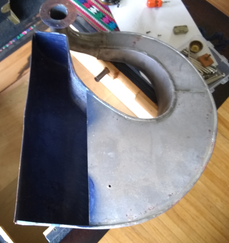 The horn is solid steel that wraps right around the case. The seal between the base of the tone arm and the horn is just a piece of brown felt which probably does not do a very good job of sealing. The input of the horn is lower than the supports for the motorboard, and the felt is not nearly thick enough to bridge the gap between the tone arm and the horn. This should probably be amended.