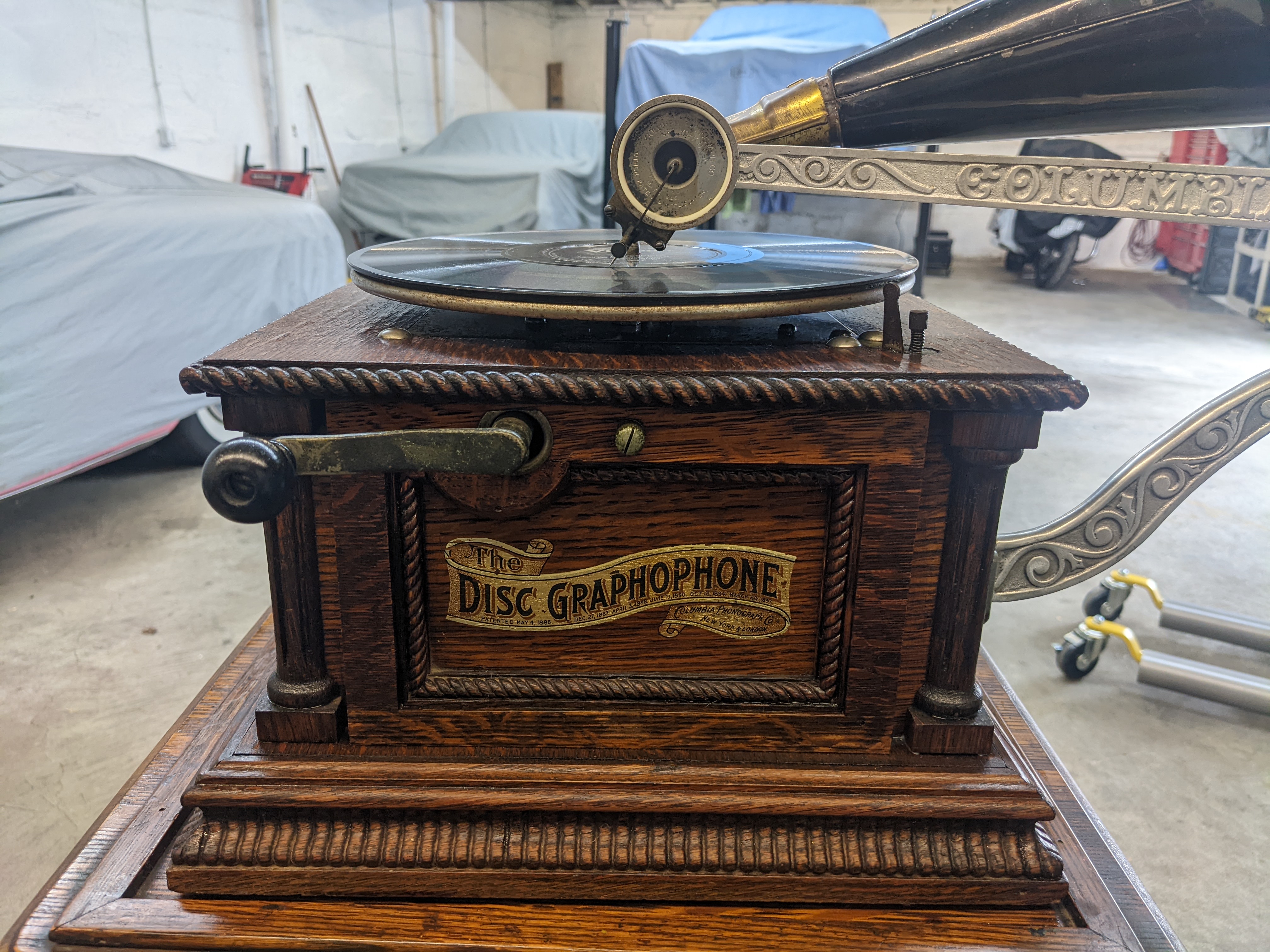 For sale is a really fine example of an early high end disc phonograph.