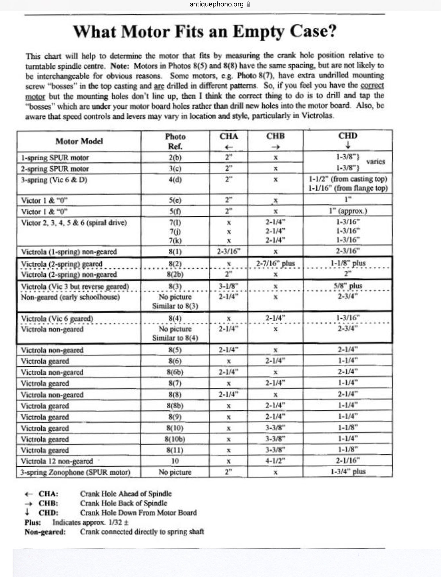 And there are also 3-4 different motor boards in those VTLA and L door Victrolas. Some of them set on top of the frame down in the cabinet and others sit down inside the opening. And there are a few other differences between machines as well, but I can't remember all of them. Pictures will help on that one of course.