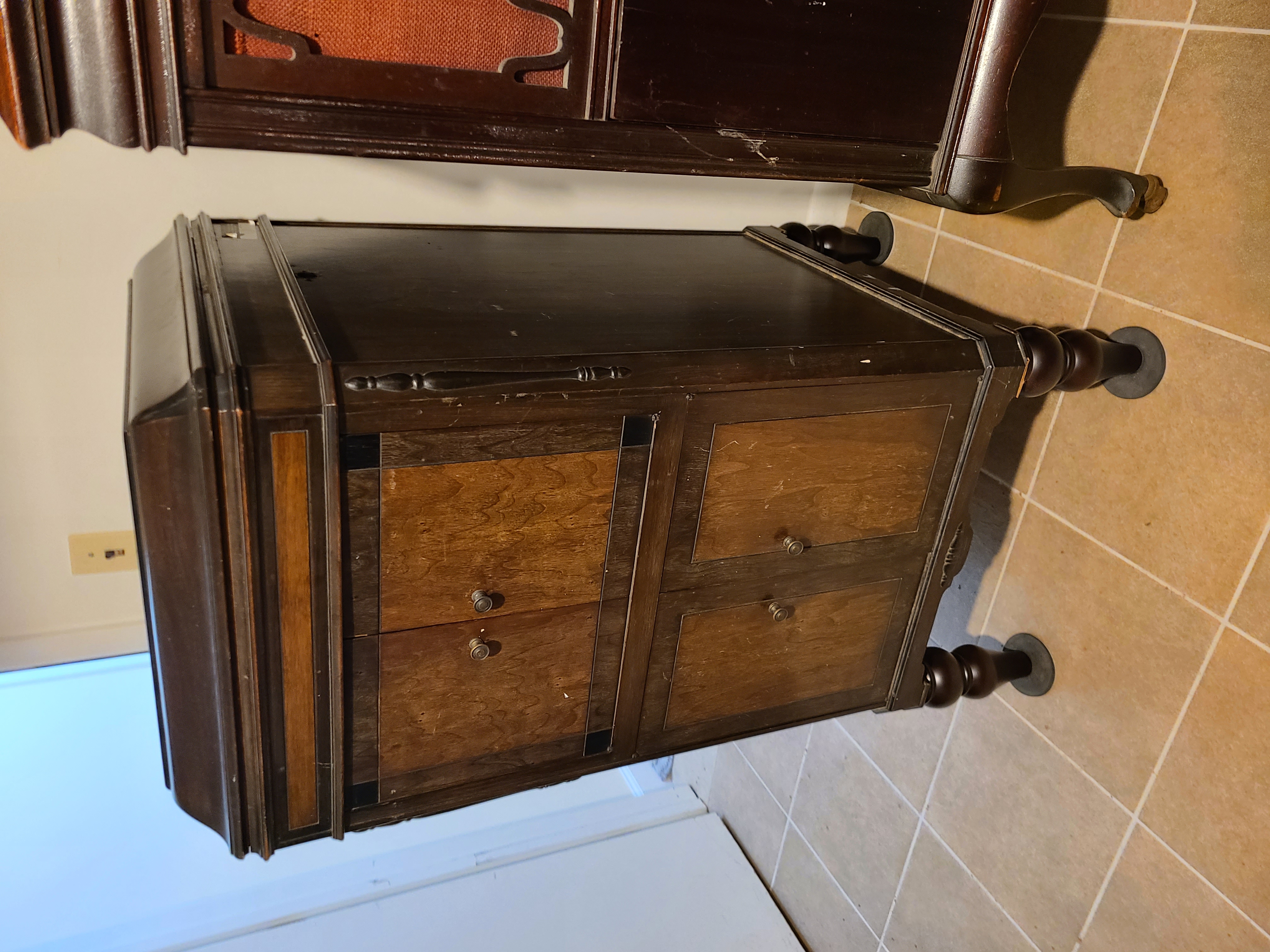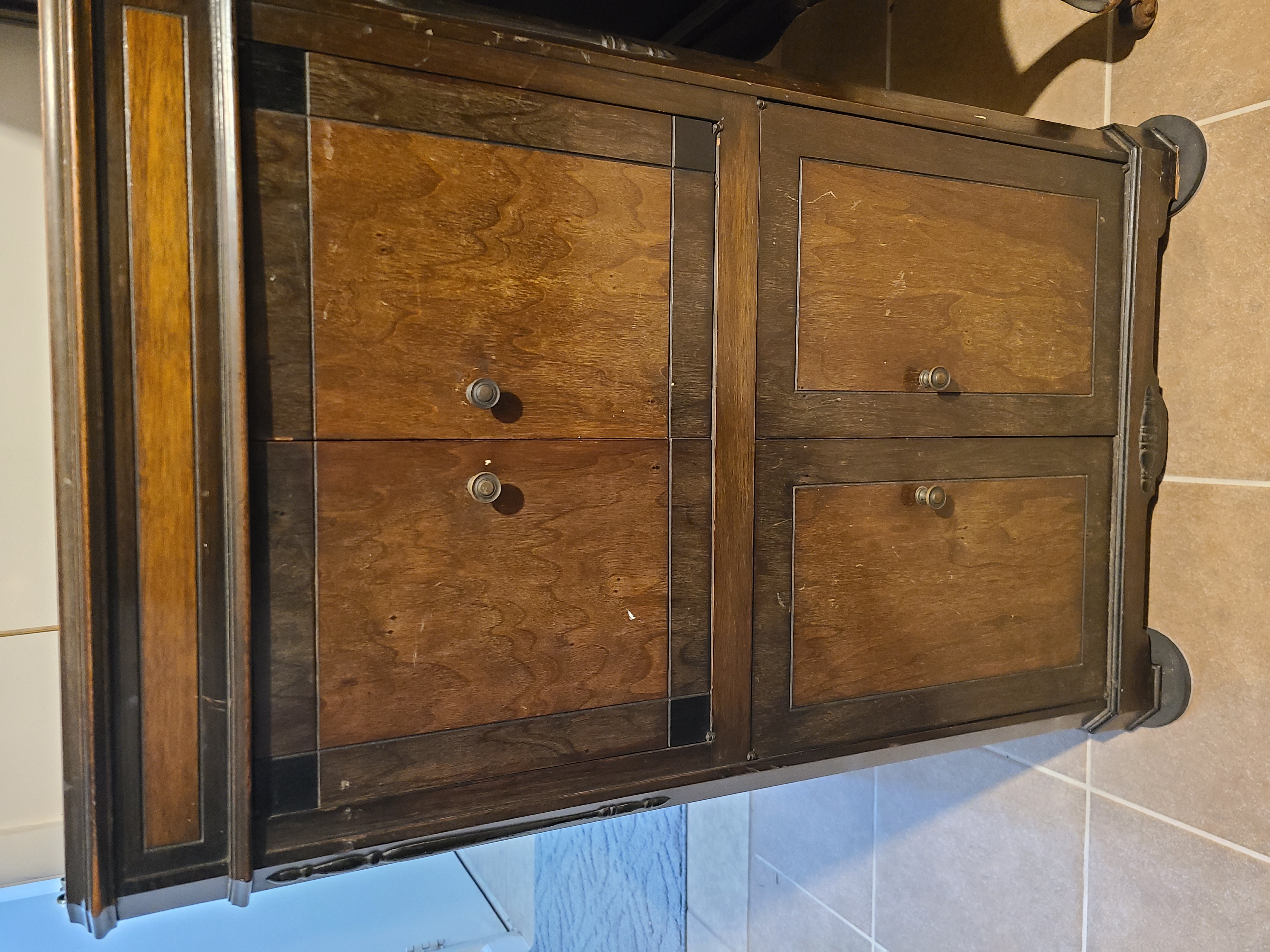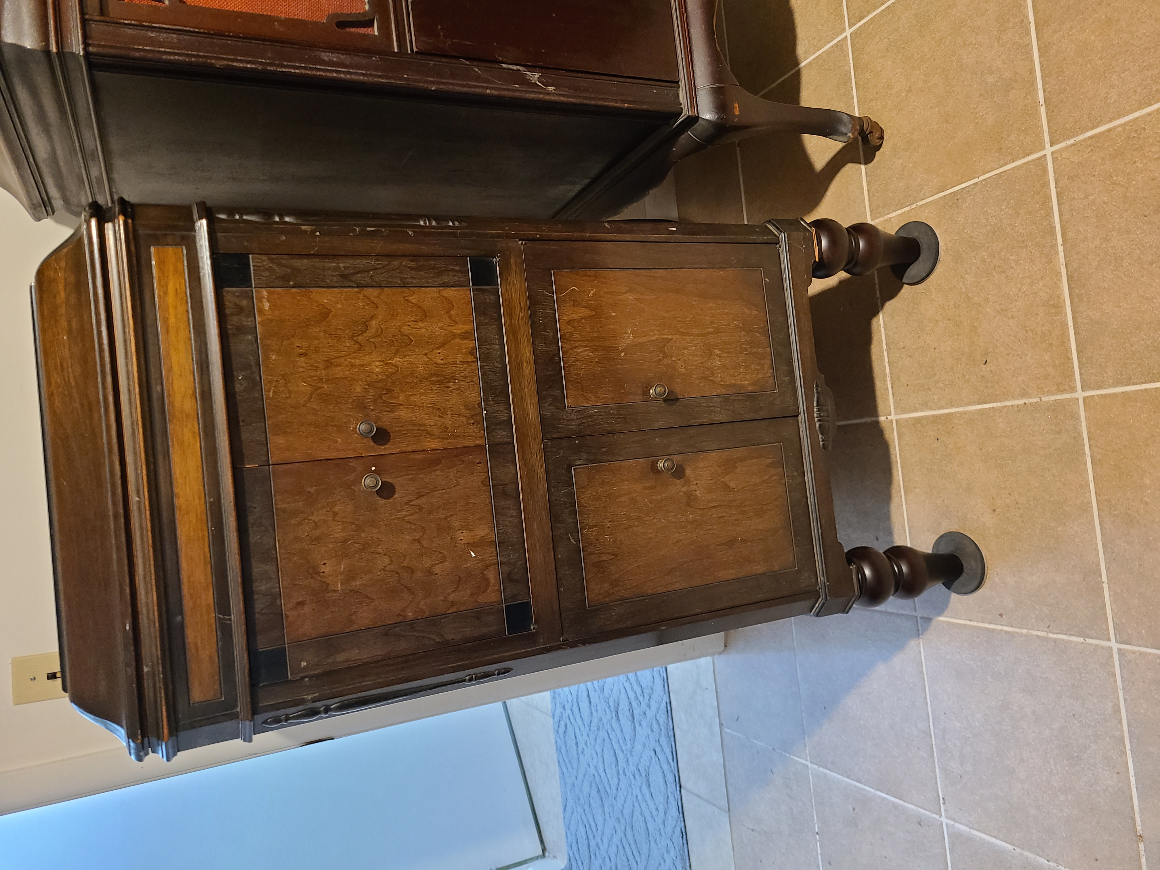 This would make a local cabinetmaker very happy to work on, by the way--a bit of work with a lathe would be pretty effective to make some new legs.