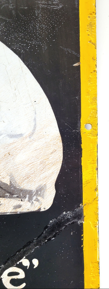 Rectangular Nipper and Gramophone enameled sign: These signs were hung in store interiors and exteriors to advertise “His Master’s Voice”. These signs were made in India in the 1940s-50s. This single sided rectangular sign measures 24”x 18”. It is in clean condition with some touch-up on the yellow border and lower right corner.