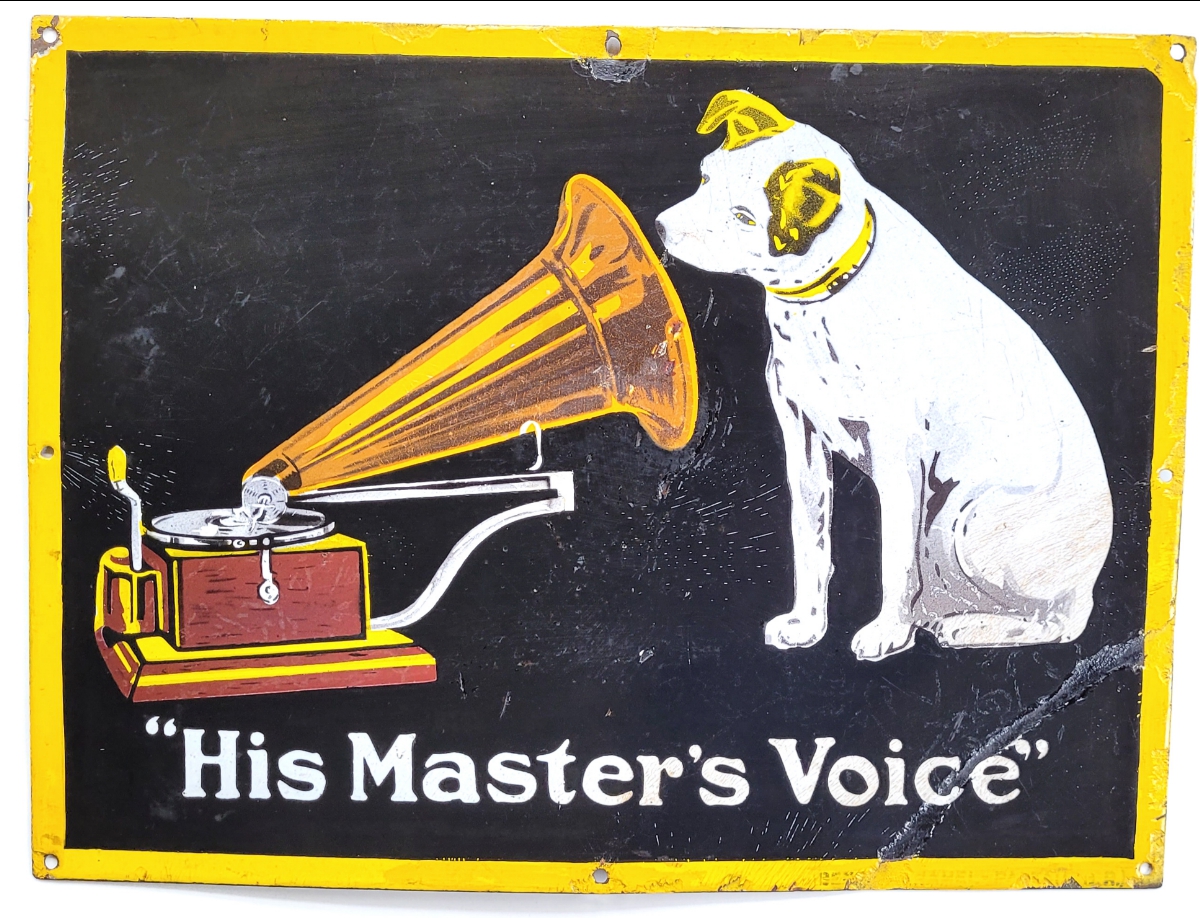 FOR SALE: Nipper & Gramophone Trademark Enameled Signs - Various