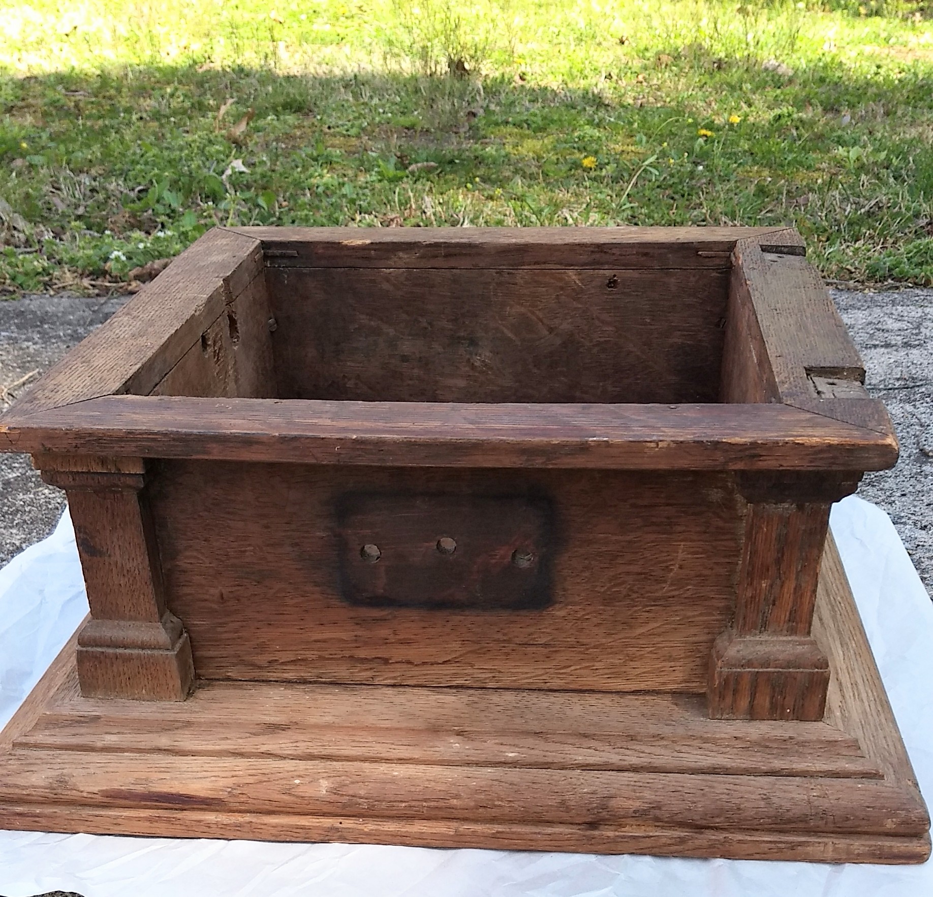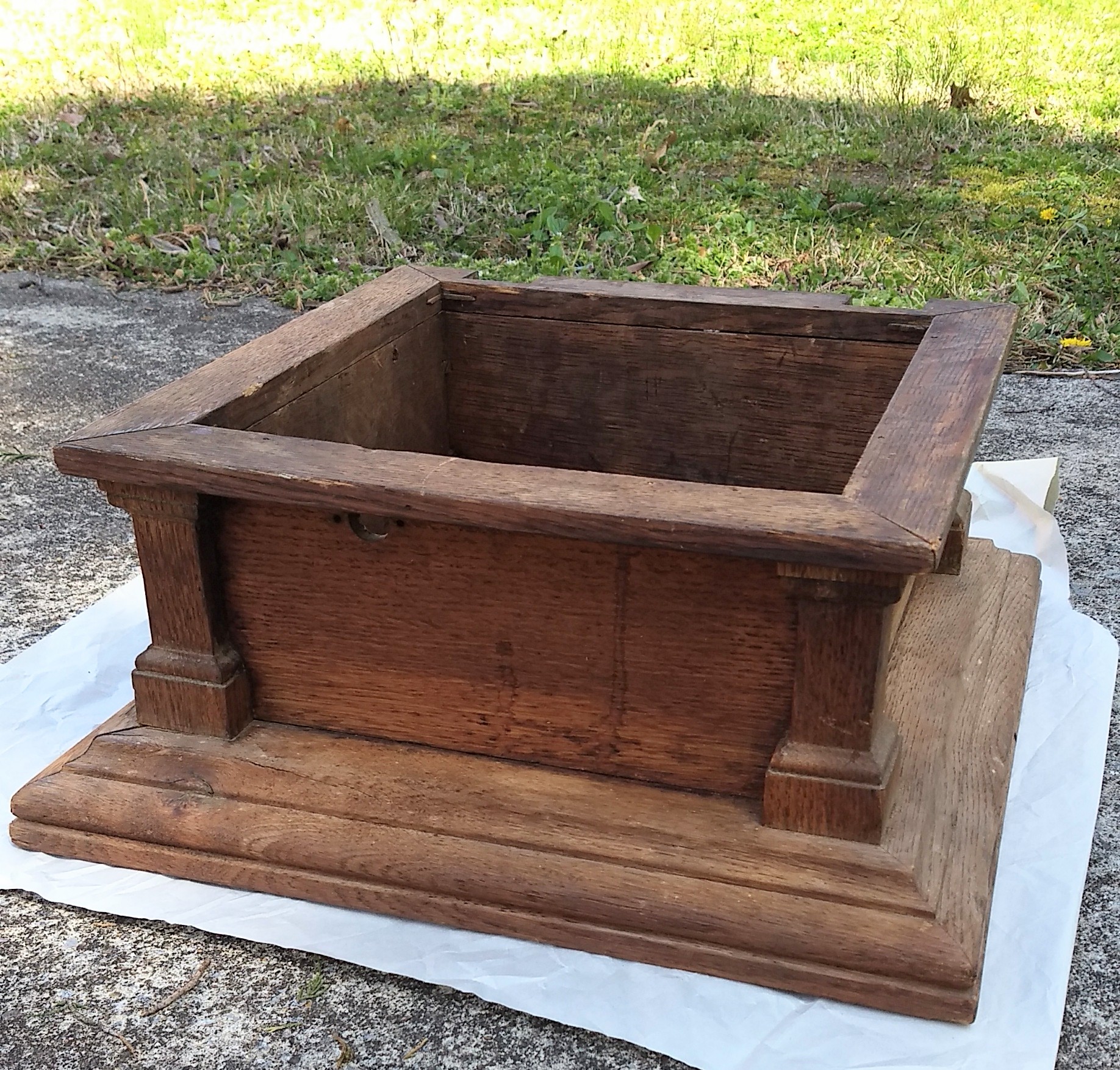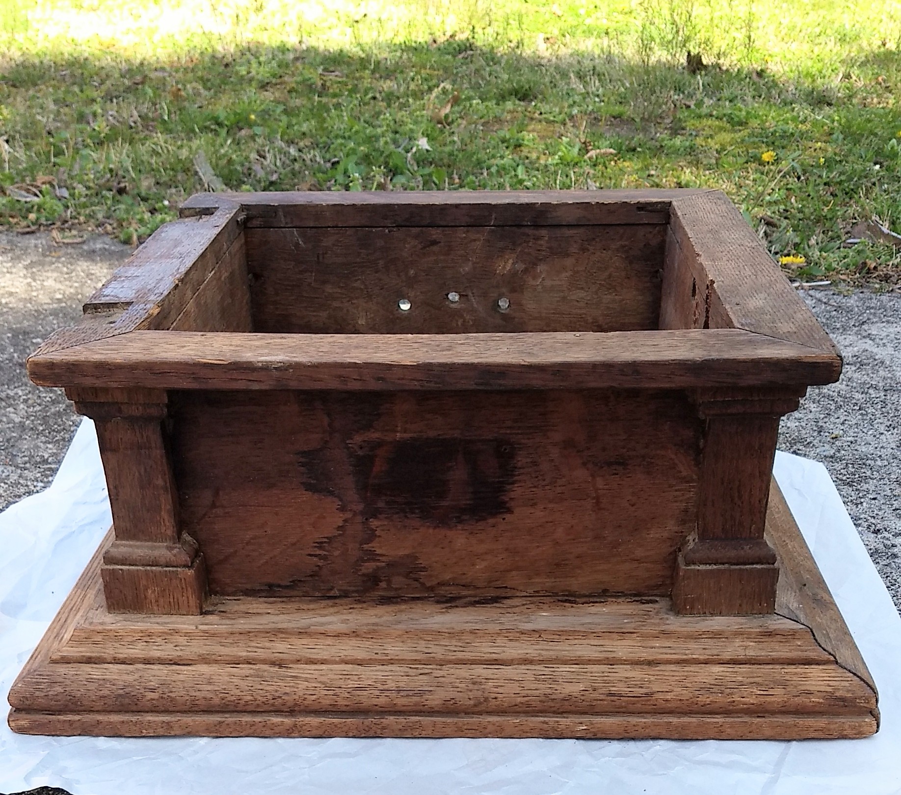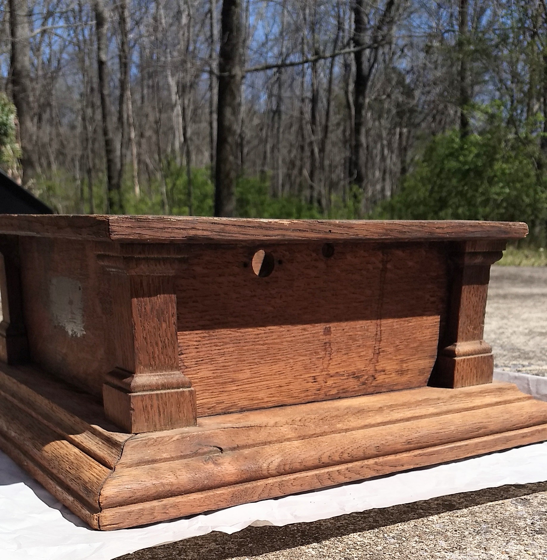 I have this case for Victor D for sale. The finish is completely gone. It's a good solid case with all 4 corner columns in place. There is no motorboard. The corners of the base moulding are very nice. I see one nick in the wood on the left back side. I am including the id tag (serial # 10077), the steel plate that accepts the back bracket bolts, and the push button lever that releases the motorboard. What you see is what you get. The price is now $$200 Sale Pending