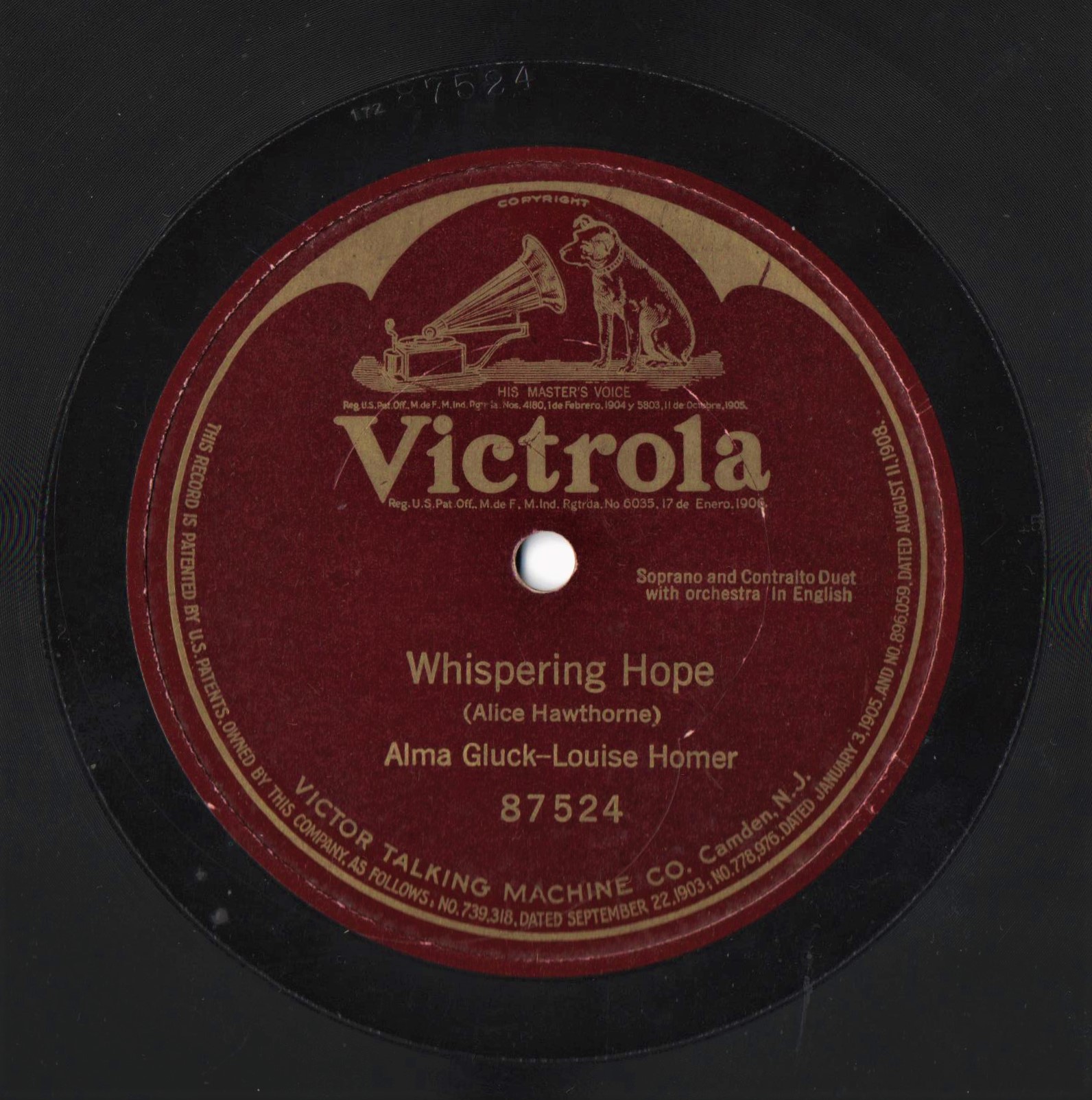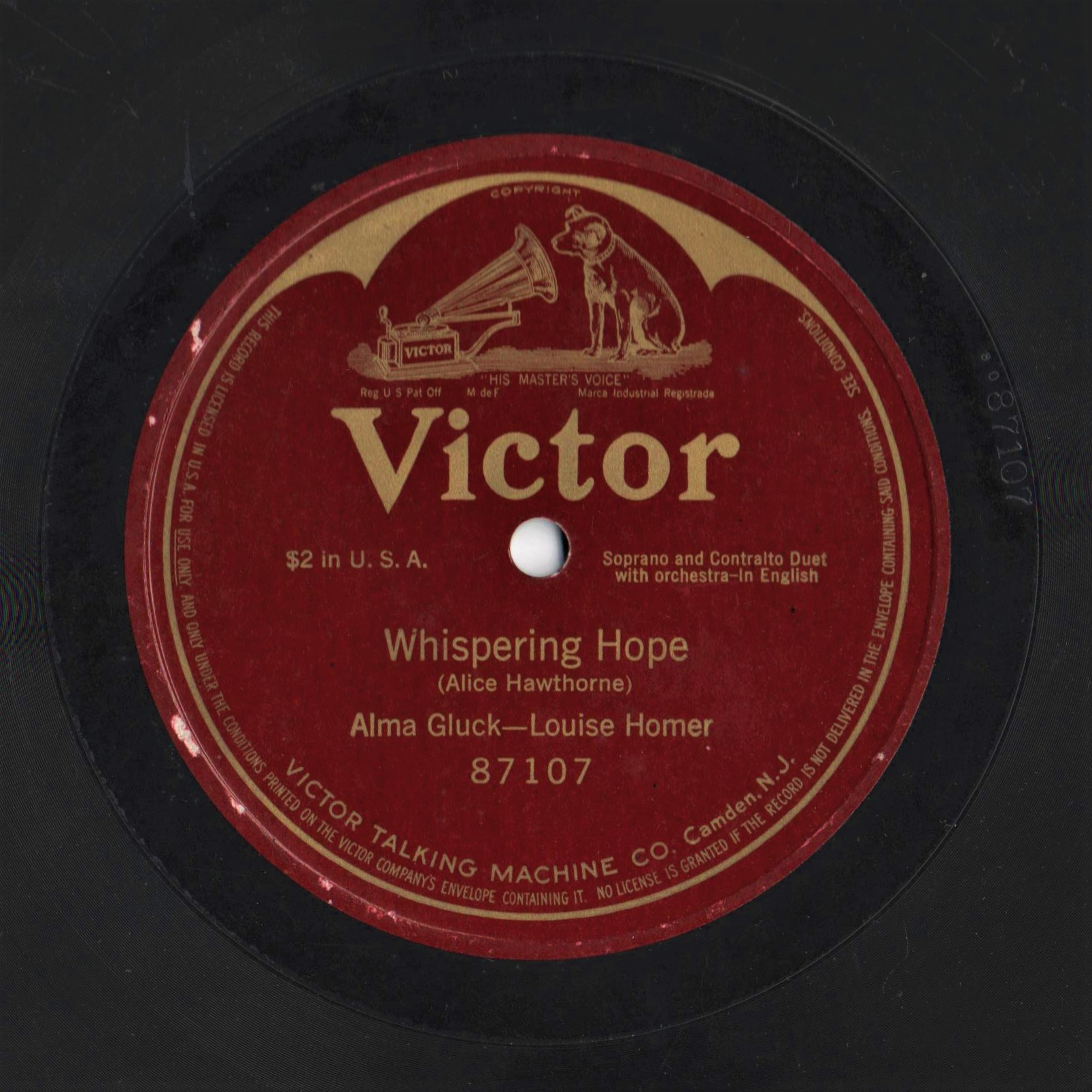 A recently purchased job lot of records included two records of "Whispering Hope" sung by Alma Gluck and Louise Homer.