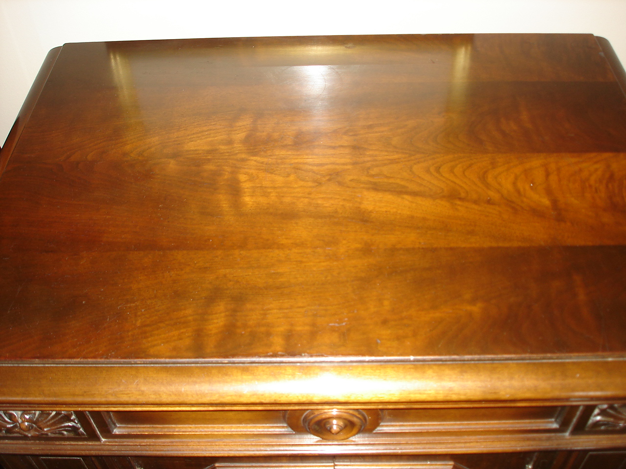 ). More like a paint brush pen really. They have hundreds of different shades. Over the course of several weeks, when I had an hour or so I could donate to tedium, I carefully filled in the scratches with the markers, trying carefully to brush only within the scratches. Gradually, it began to look much better. Areas with thin finish, such as edges, I either used the markers or lightly brushed on some dye stain using a Q-tip, then passed my finger over it to blend it in. (Shouldn't really touch aniline dyes however!) Finally, a nice grade a beeswax finish and it looks pretty darned good. Maybe worth a try for you as well. Little to lose but some time and sanity. (Just don't use anything with silicone in it)
