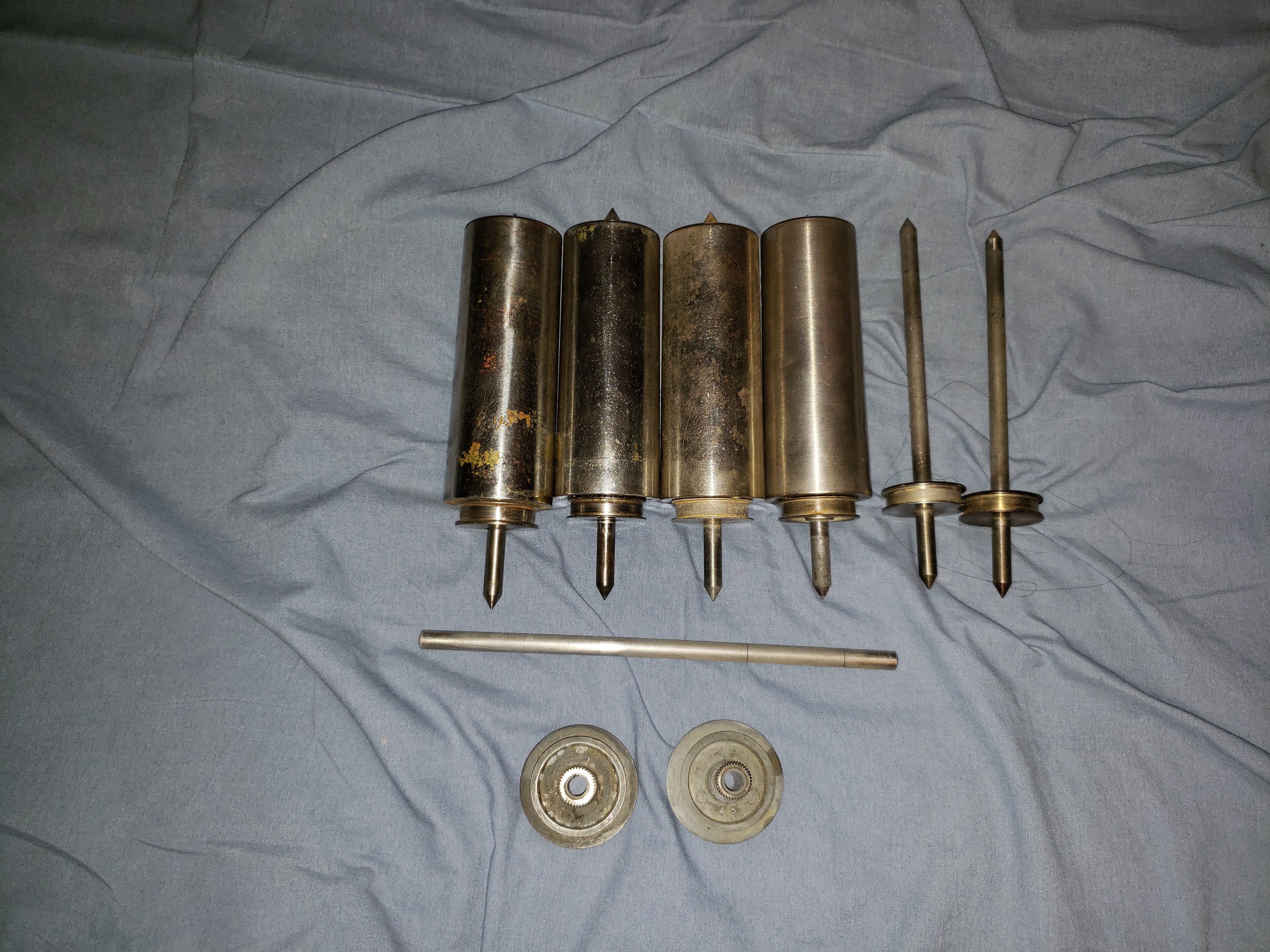 Here I have 4 Edison Standard mandrels with pulleys. $10 per mandrel with pulley, $5 per shaft with pulley, $5 each for the fireside pulleys with gears (I believe those are for firesides or Gems), and $5 for the carriage rod. $50 for the whole lot. One of the mandrels has some rust and seems the nickel plating is peeling but still functional. All the others are in great cosmetic and functioning shape. I'll only ship to U.S. residents. If you live in or around Philadelphia I'd be glad to meet up and hand these over in person.