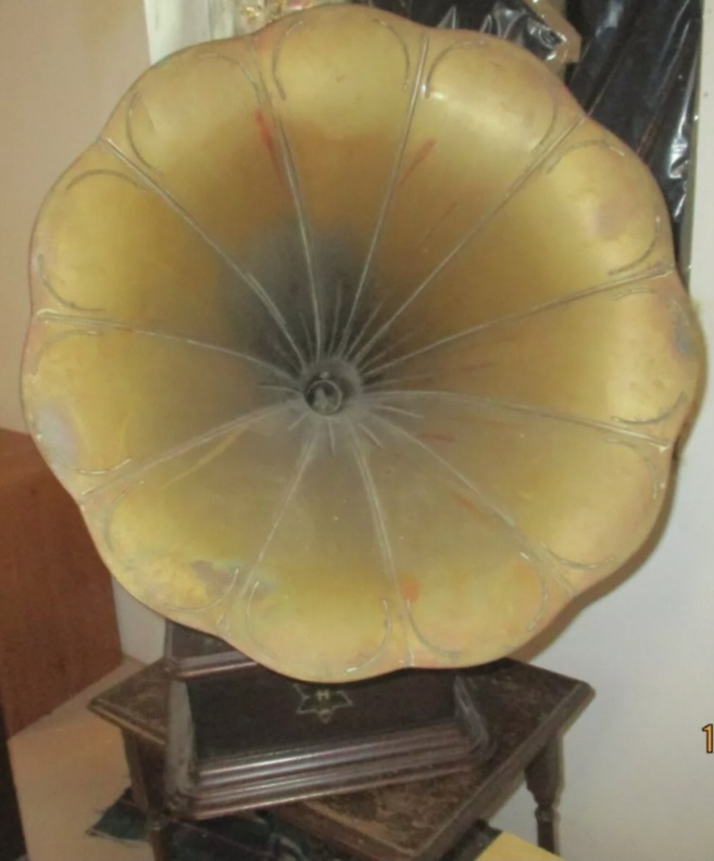 Can anyone please advise me on the originality of this machine pictured? The photos are not especially clear so I can't tell if the soundbox is original. I suspect the winding handle is a replacement but what about the horn and elbow? I don't recognise the horn but it looks wrong to me.