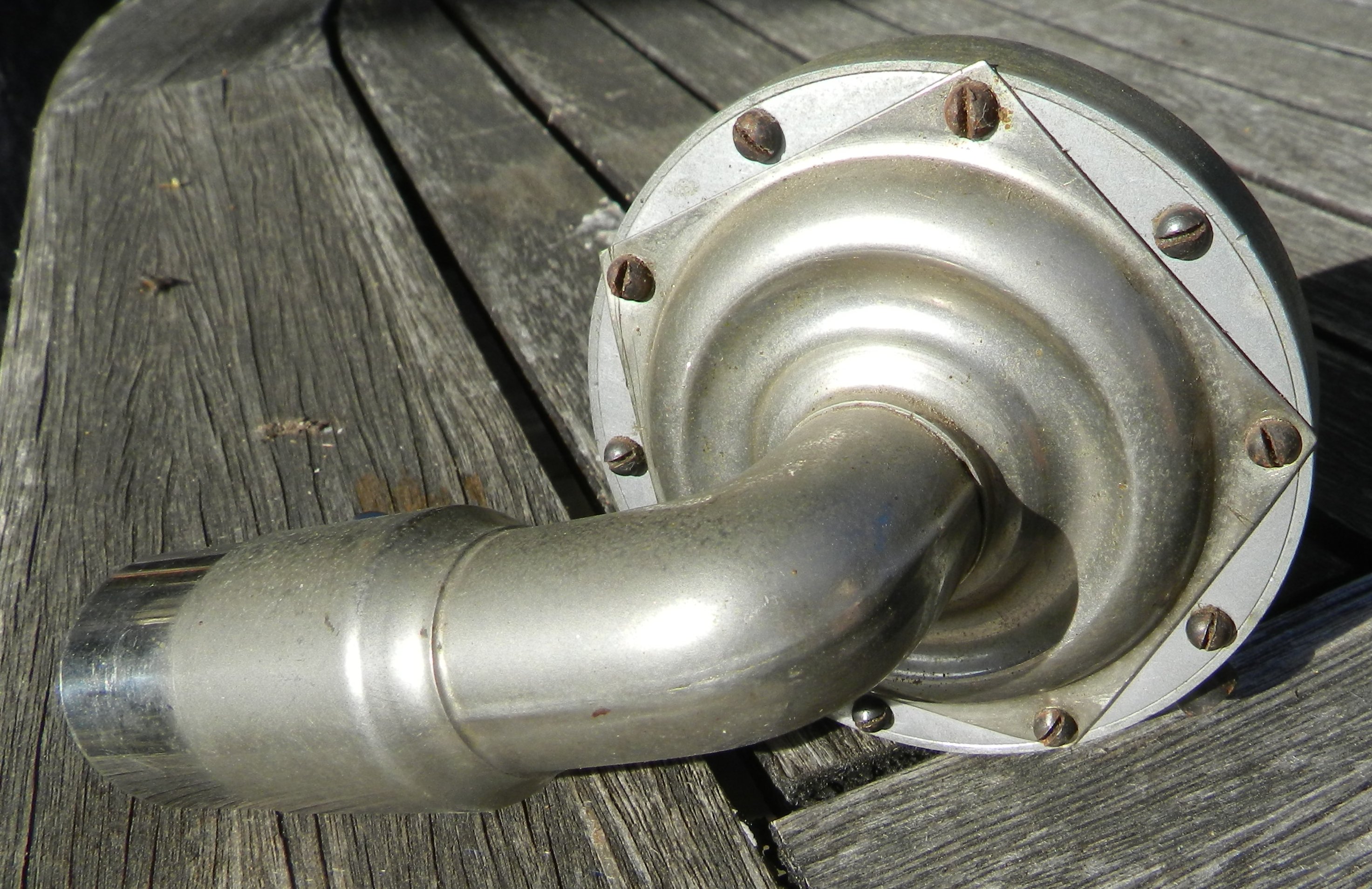 Well, we thought about that but considering that both the reproducer arm and the internal horn are manufactured and not handmade, there is just no way to connect them to a klingsor speaker sitting on top of the turntable (attached a pic of the reproducer arm and internal horn).Phono48 wrote: Thu Jun 09, 2022 5:23 am Am I alone in thinking this looks like a standard "tall" model that has been cut down, and the grille repositioned in the back, as that was the only place it could have fitted in?