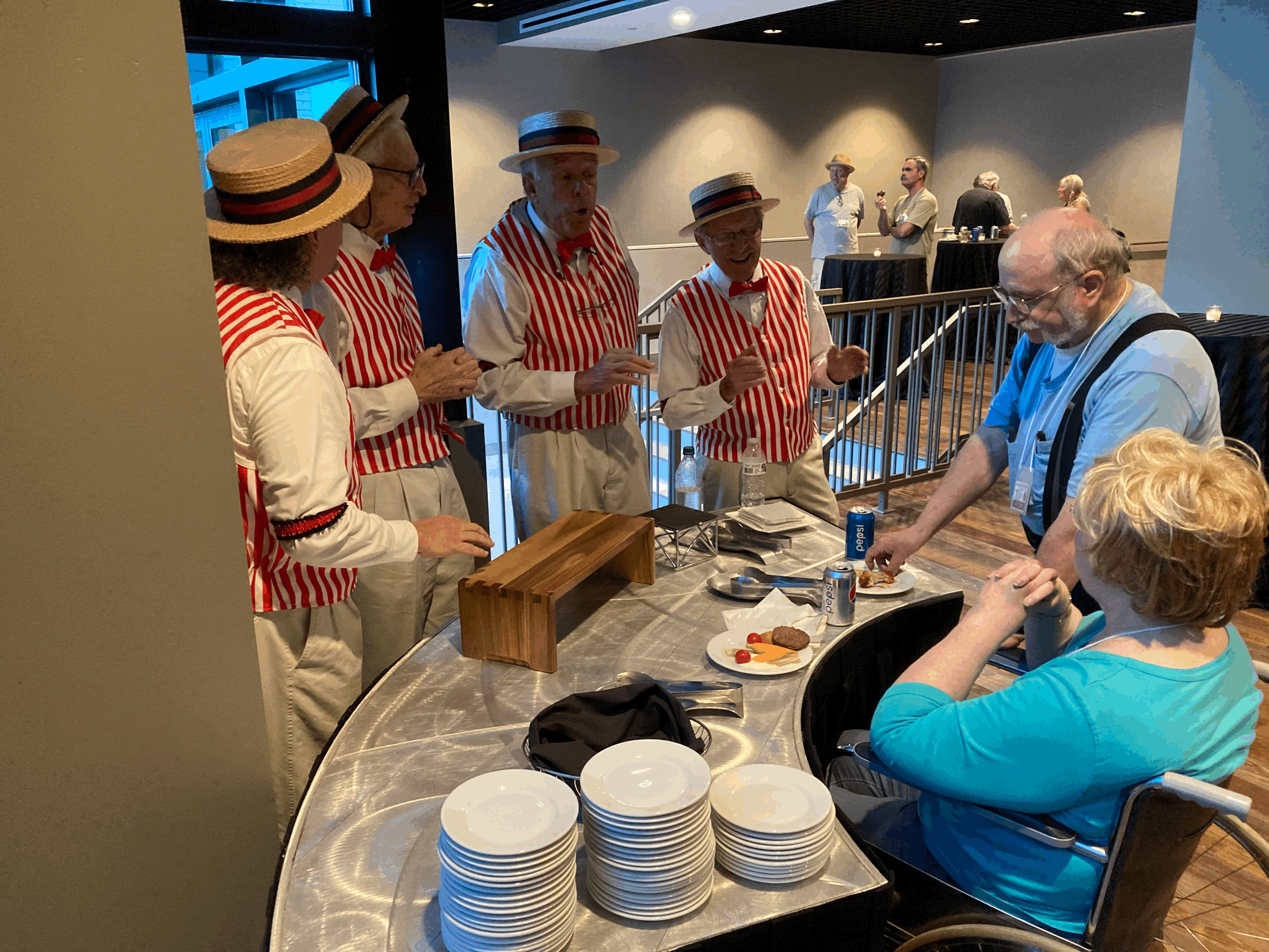 I am very glad our small traveling troop of phono nerds, Stan, Dan, and myself, drove from Oregon to the very first Midwest Expo. I think APS and, in particular, the APS Midwest Expo Committee did an outstanding job and hit the mark on so many details. The venue was outstanding. As you've seen from the photos the hall was very large, climate controlled, and perfect. I can't express how nice it is to jump in the elevator to get to your room to relax and regenerate. Rooms came with breakfast vouchers and the staff was as attentive as any I've ever experienced. The Saturday banquet was well attended. The buffet featured a variety of dishes and the desert was world class. Speeches were short and to the point, the Dixieland Jazz Band was terrific, and the silent auction featured quite a variety of goodies. I was most pleased that the Donley family was in attendance and thanked for their many years of hosting the Union show. The educational sessions held on Saturday and Sunday were a great idea. Joan Rolfs and I did one on Nipper and it was fun and well attended.