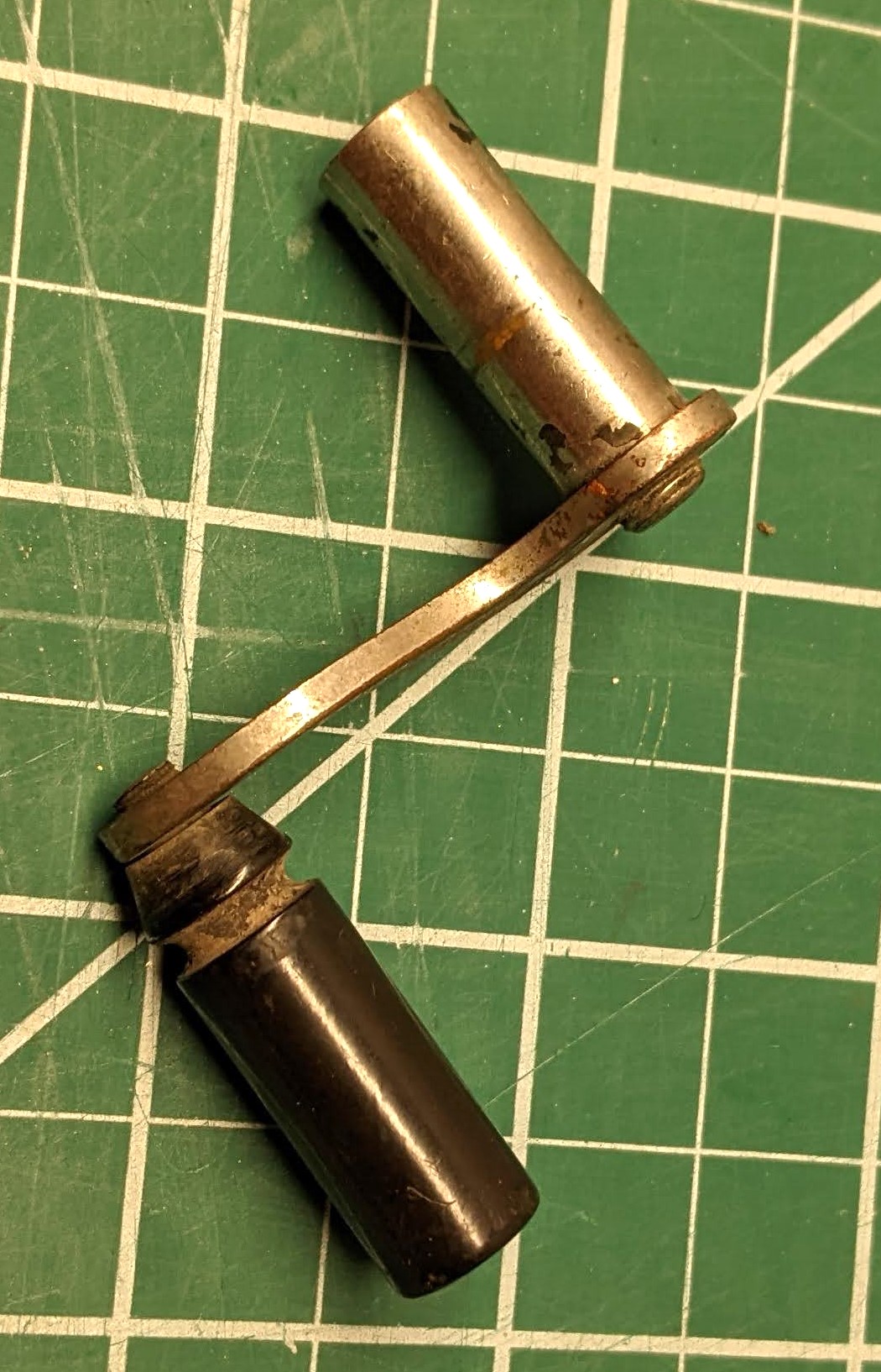 Nice example of an early, unusual crank. It has a really cool gutta percha handle and fits on either a Q or Eagle. While clearly not original issue, it is certainly a nice upgrade to a key and works wonderfully.