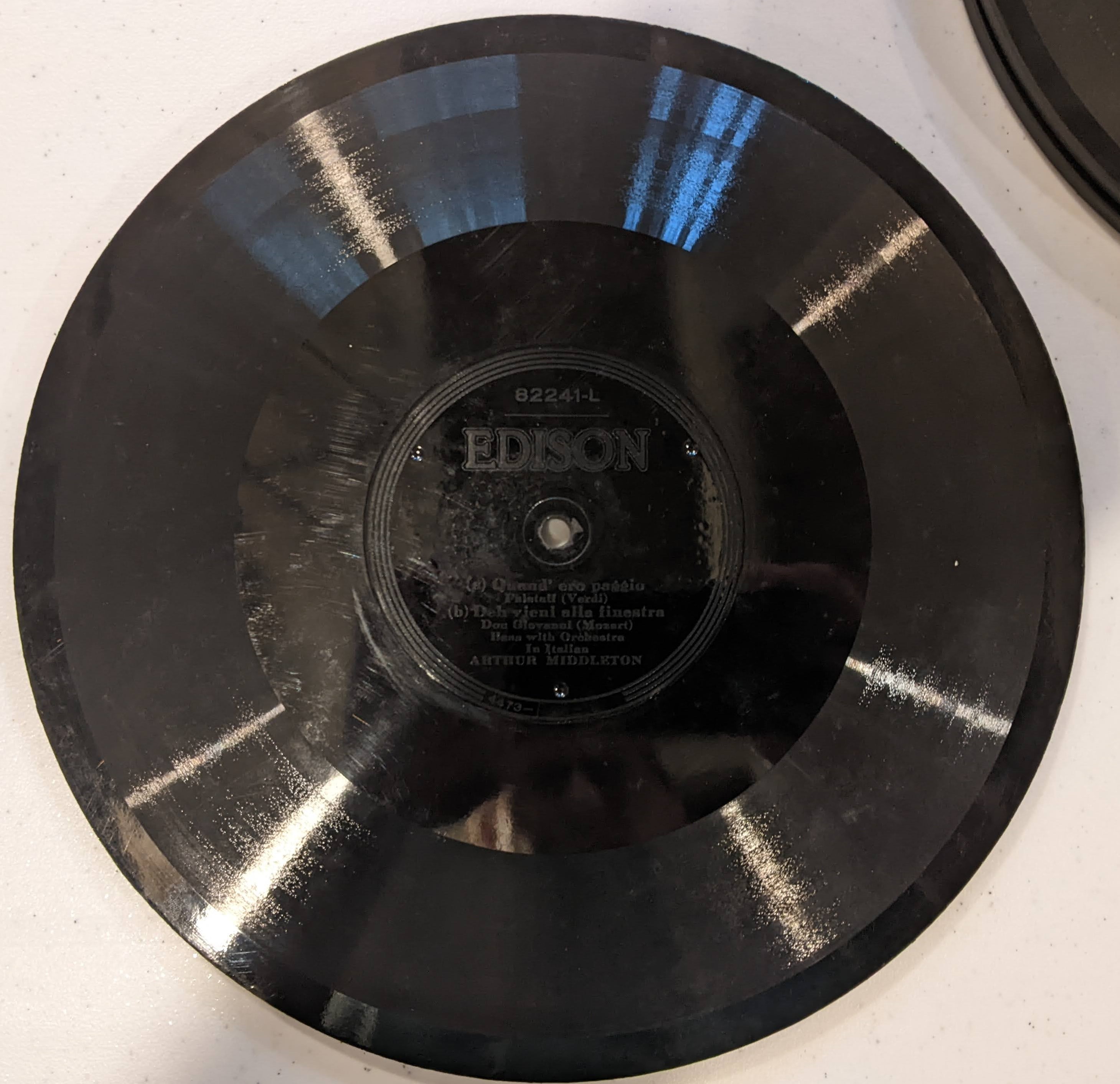 These disks are each marked "Discarded," and were the property of Edison "loaned" to employees, never to be sold or loaned to others. Many the records in this grouping have an unfinished edge, and none of the paper label records every had a paper label.