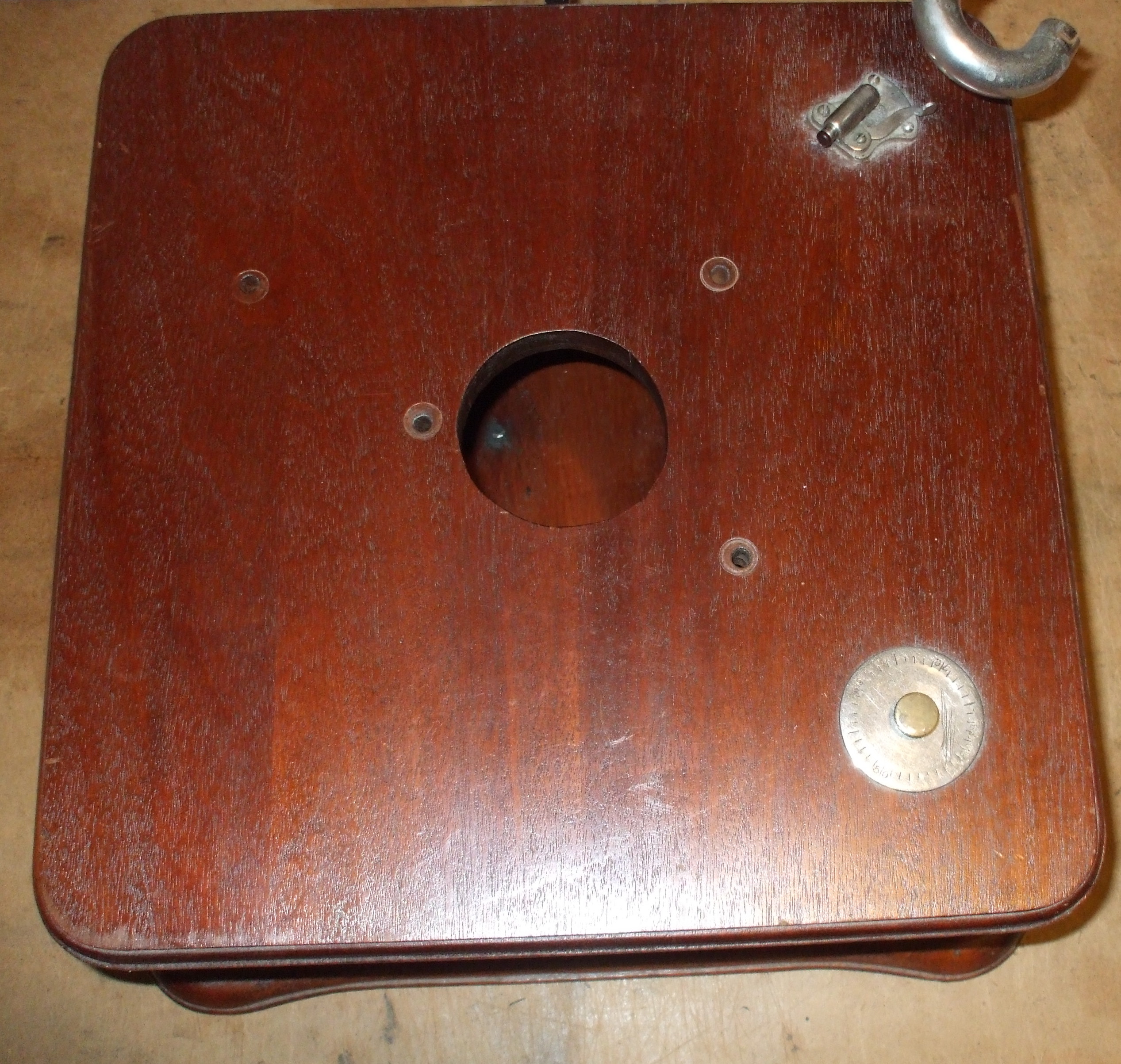 Oedipus wrote: Tue Jun 28, 2022 9:47 am The Cockleshell normally has a double spring motor and ten-inch turntable, but I have never seen a mahogany Cockleshell before. I take it the position of the brake indicates a 12-inch turntable? I presume the black finish and unusual lining on the back bracket are not original? -- it's a post-G & T model, and the bracket would normally have been nickel-plated.