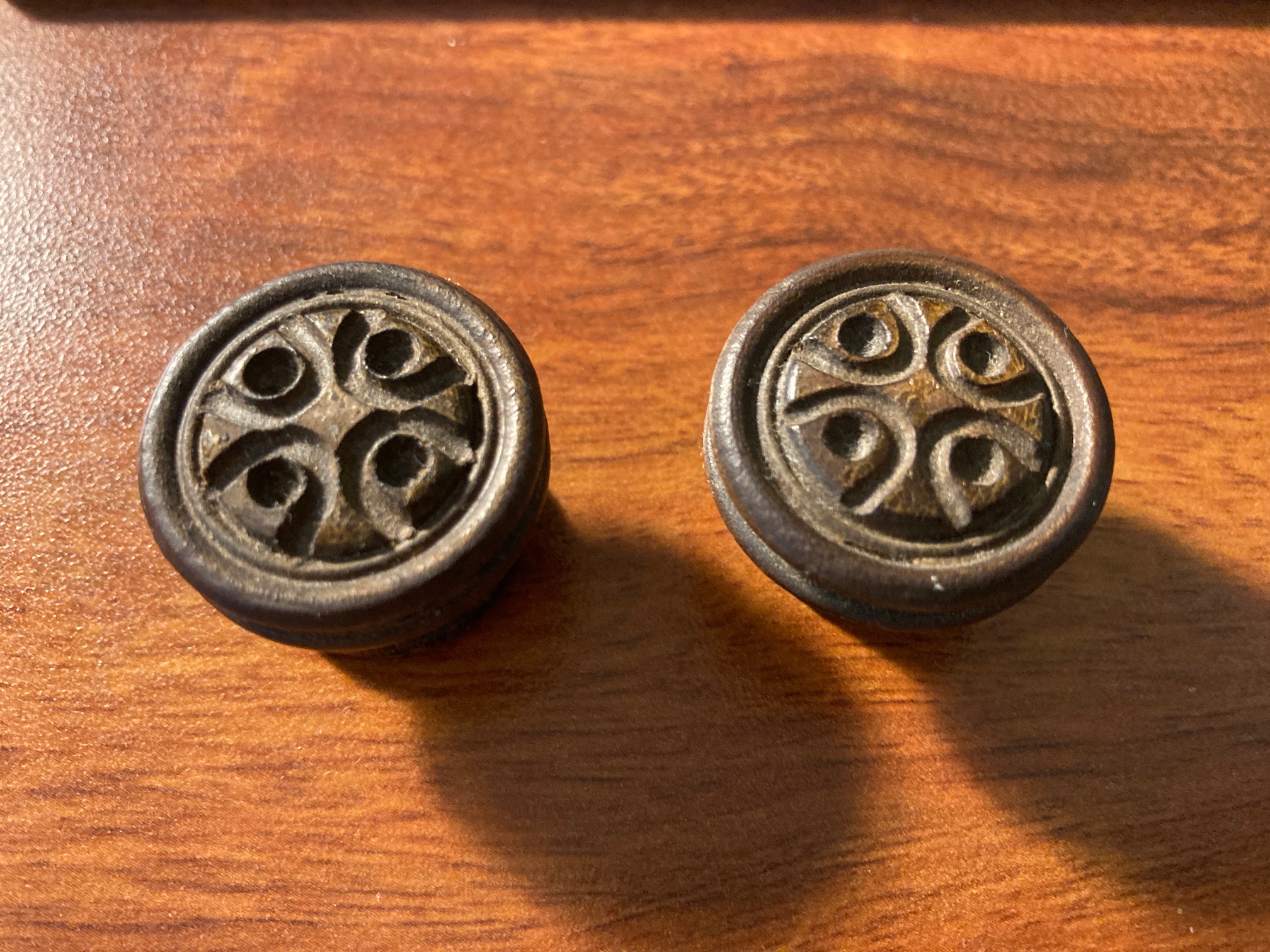 I'm not exactly sure if what I'm looking for falls under radio or phonograph more or less but I'm basically in need of two wooden knobs for a RCA Victor RE-57 radio/phonograph machine. I have one of the knobs, for the main slider thing to select stations, but two knobs below it above the grill are missing. I assume they're the same as the slider. I need two of them. I know the RE-57 is derived somewhat from the RE-45 so perhaps those knobs work too, but I couldn't tell. If you even have any knobs similar in appearance to the one pictured please let me know. Pictures of the single knob up close are from the single knob on my machine, and the picture of the machine with all 3 is not mine. Got it from Google. Hope someone can help.
