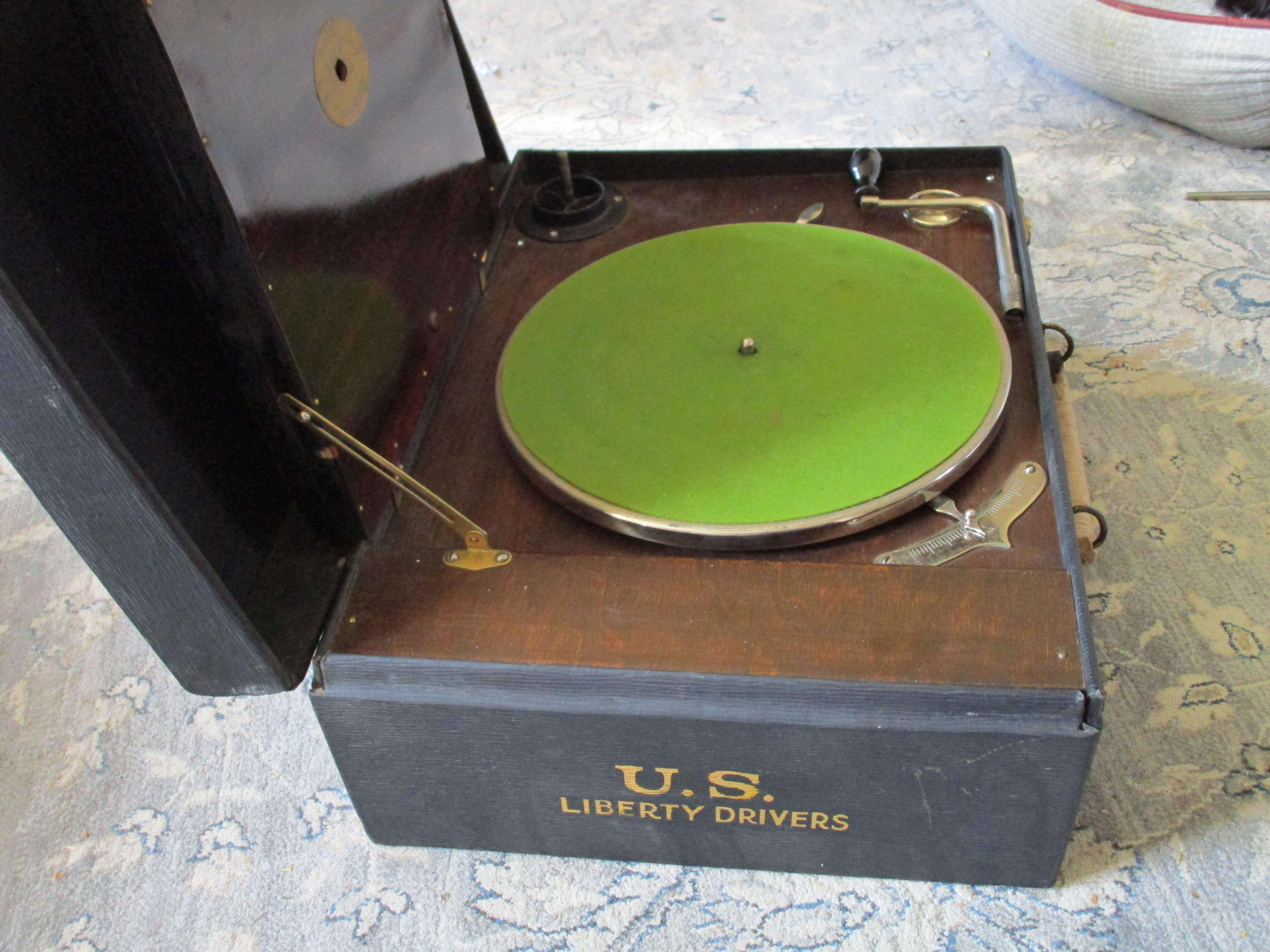Since there is no known documentation I could find about the U.S. Liberty Drivers portable phonograph I am offering for sale here I can only speculate. I'm presuming the U.S. Army provided these portable phonographs to the drivers of the U.S. Liberty Trucks for transporting and entertaining U.S. Army soldiers of World War I.