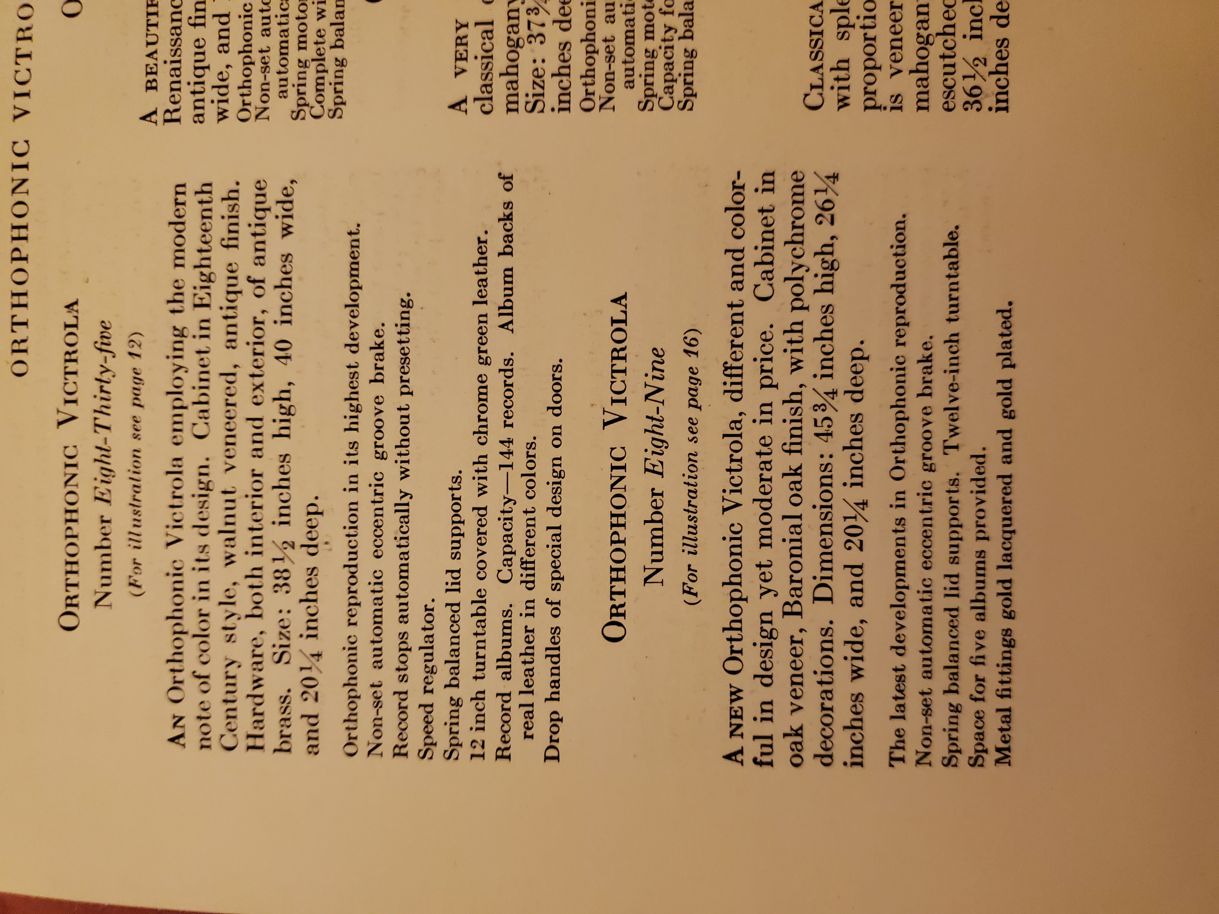 I've had my 8-9X (induction motor) for over 20 years. It's a great machine, and I prefer its sound to that of a Credenza. I find that the 8-9's metal horn produces a crisper, louder sound than the Credenza. I prefer the 8-9 particularly for classical orchestral recordings. Mine has the orange felt turntable covering which is probably original to the machine.