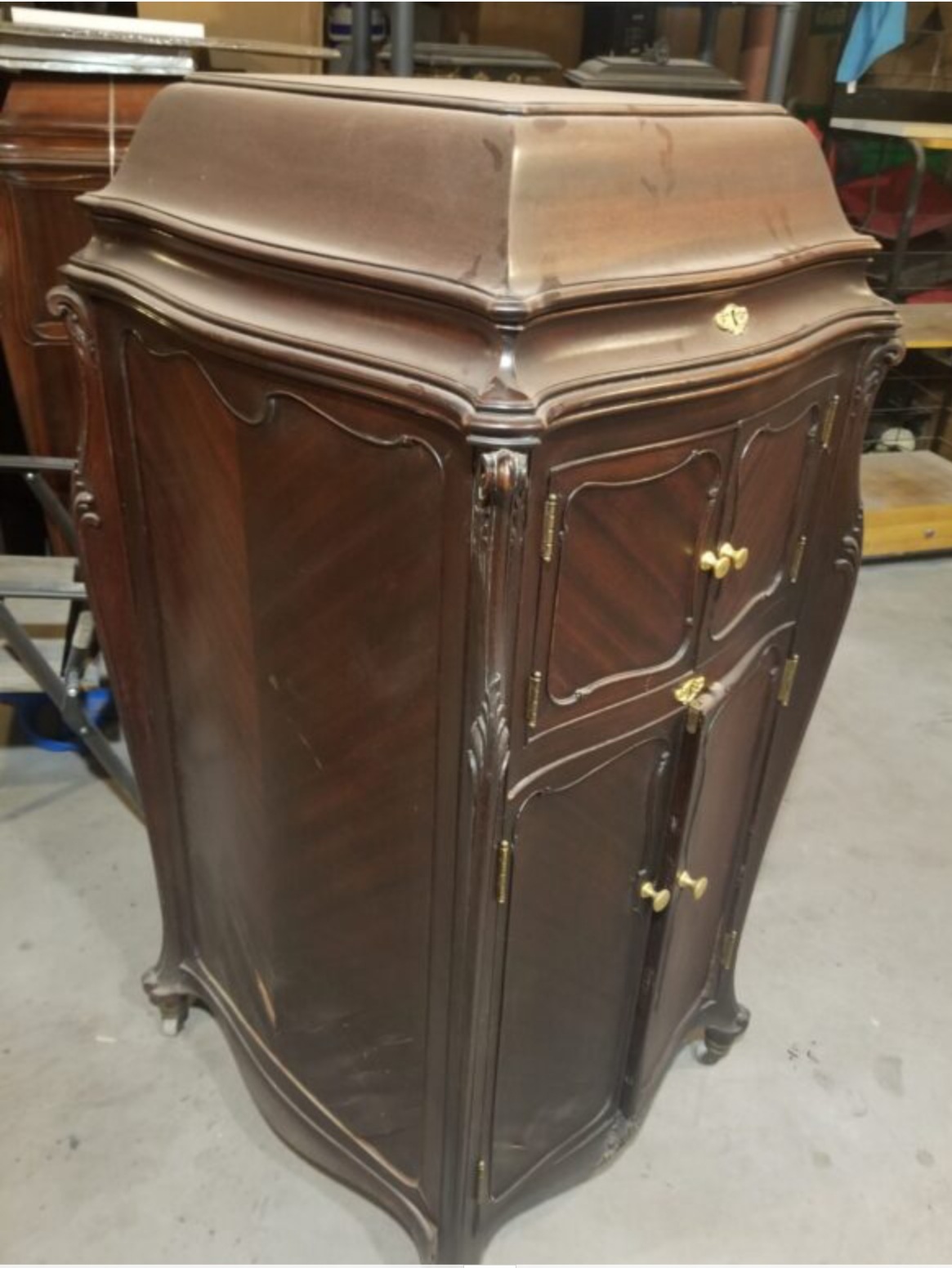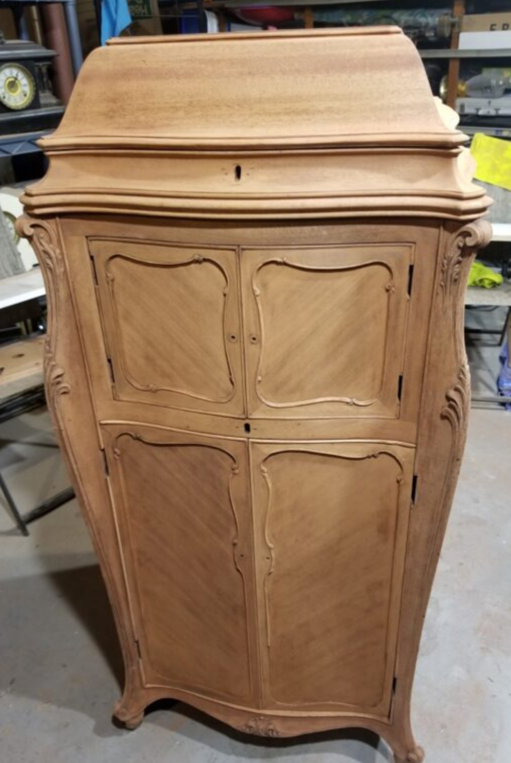 John you are the KING of higher end bowed cabinet Victrolas!Jonsheff wrote: Tue Jul 05, 2022 11:38 pm This Victrola XVIII 18 Was one of my longest frustrating projects, stored in a damp basement caused loose veneer and back door trim missing, lots of problems to fix