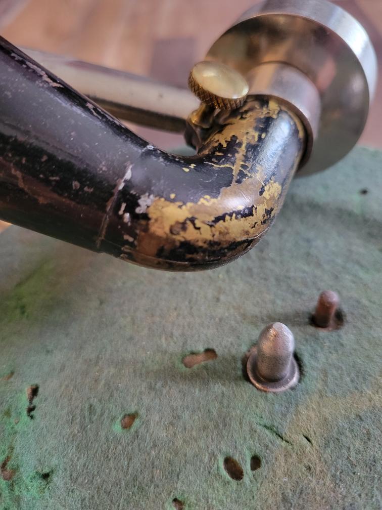Is it possible that it’s an all brass horn that had the body painted black later on? It looks brass where the paint is missing...