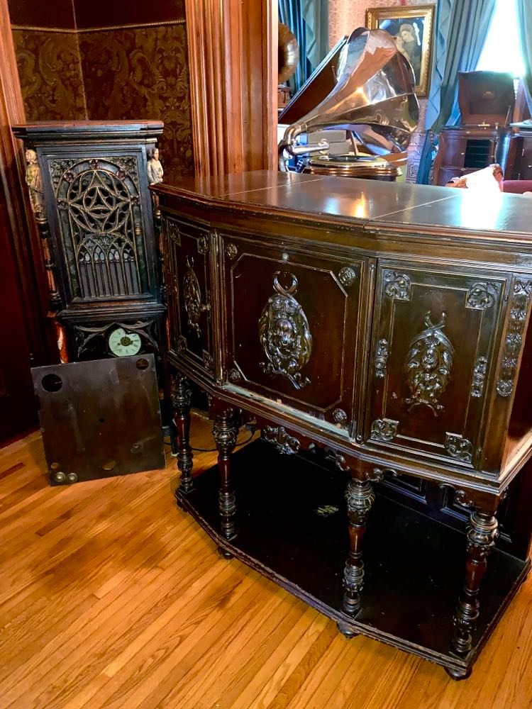 WANTED: In need of one of the large Sonora brass motors that were featured in some of their high-end consoles. This English Renaissance model was stripped of the works years ago but the motorboard remains. I have a tonearm and turntable. Ideally I could use the correct length crank, on/off mechanism and round record counter gauge as well. If you happen to have one or have a lead I would be most appreciative! Thanks!