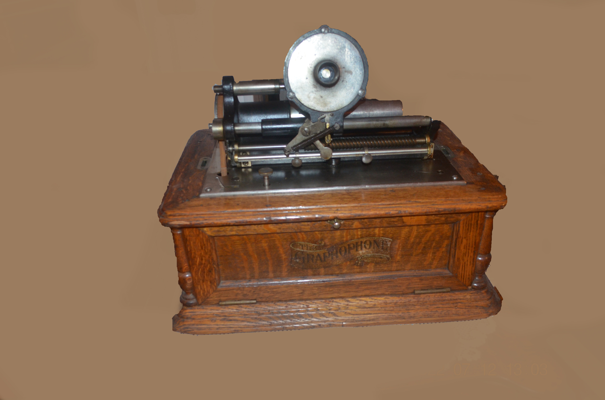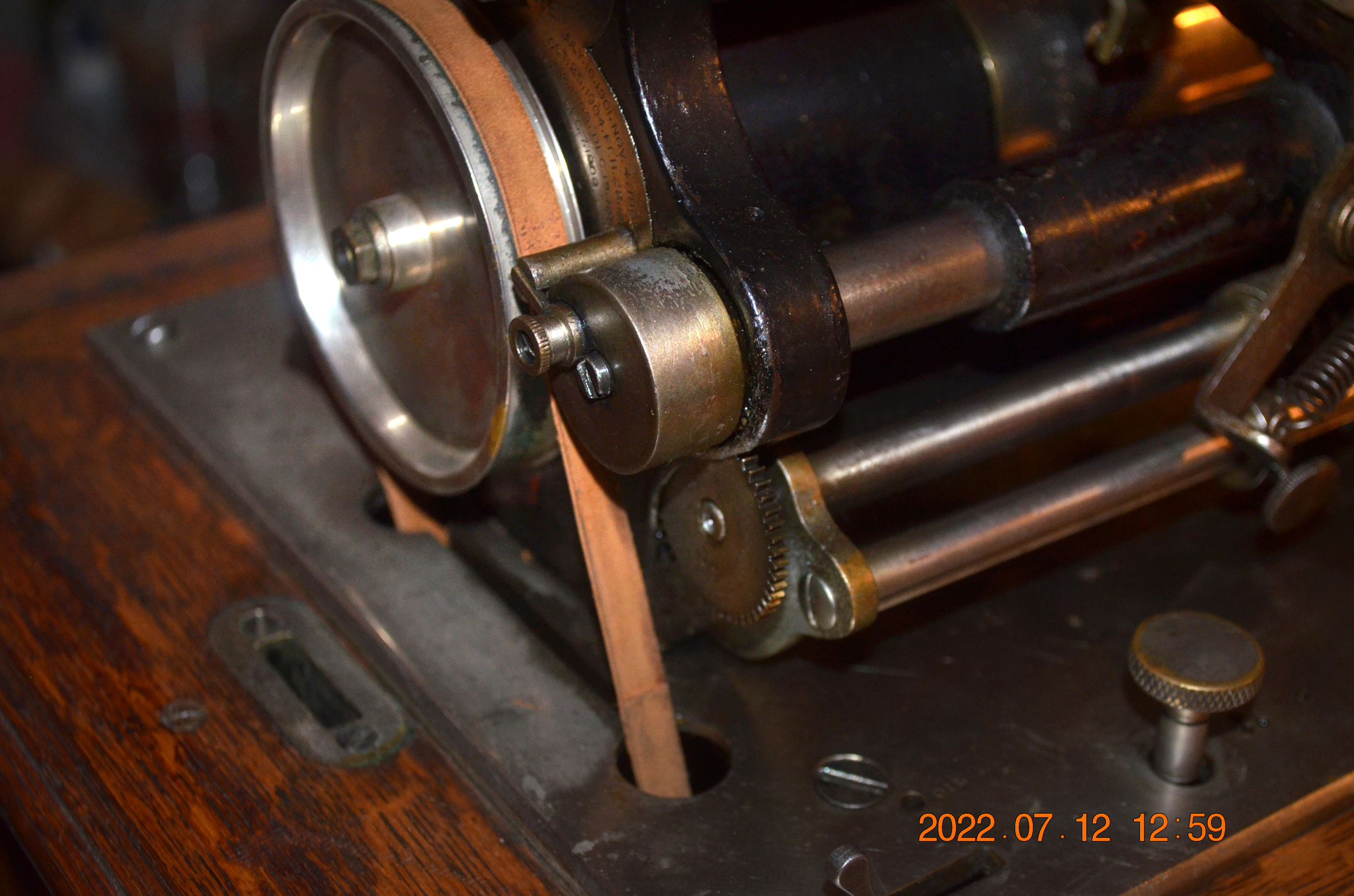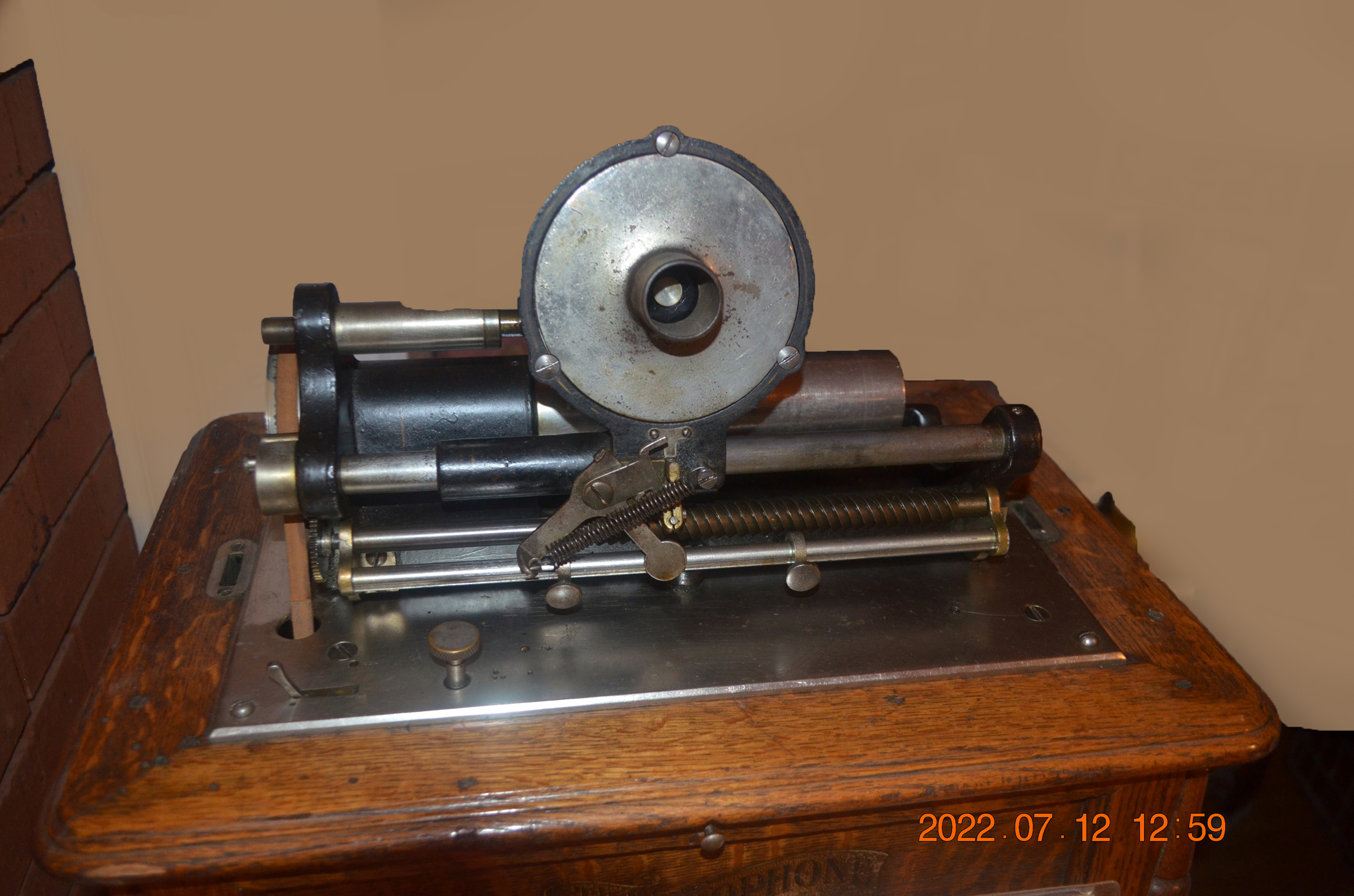 I'm curious how much volume you're getting from it. Generally, these no longer play as loudly as they did when new unless the friction shoe assembly and amber wheel are replaced. Would love to see and hear a video of it playing a 2 minute and 4 minute cylinder. I'm surprised that the 23" all brass horn attached directly to the reproducer throat doesn't drag or otherwise inhibit the carriage movement especially considering all of the extra upper works gearing that was added for 4 minute play and the repeater. The big 3-spring motor on the BC is indeed very powerful but...Wow! Running the extra gearing and the weight of the 23" brass horn is an impressive feat for any spring motor. As far as value, who knows? But I DO know I'd love to own it and play it!