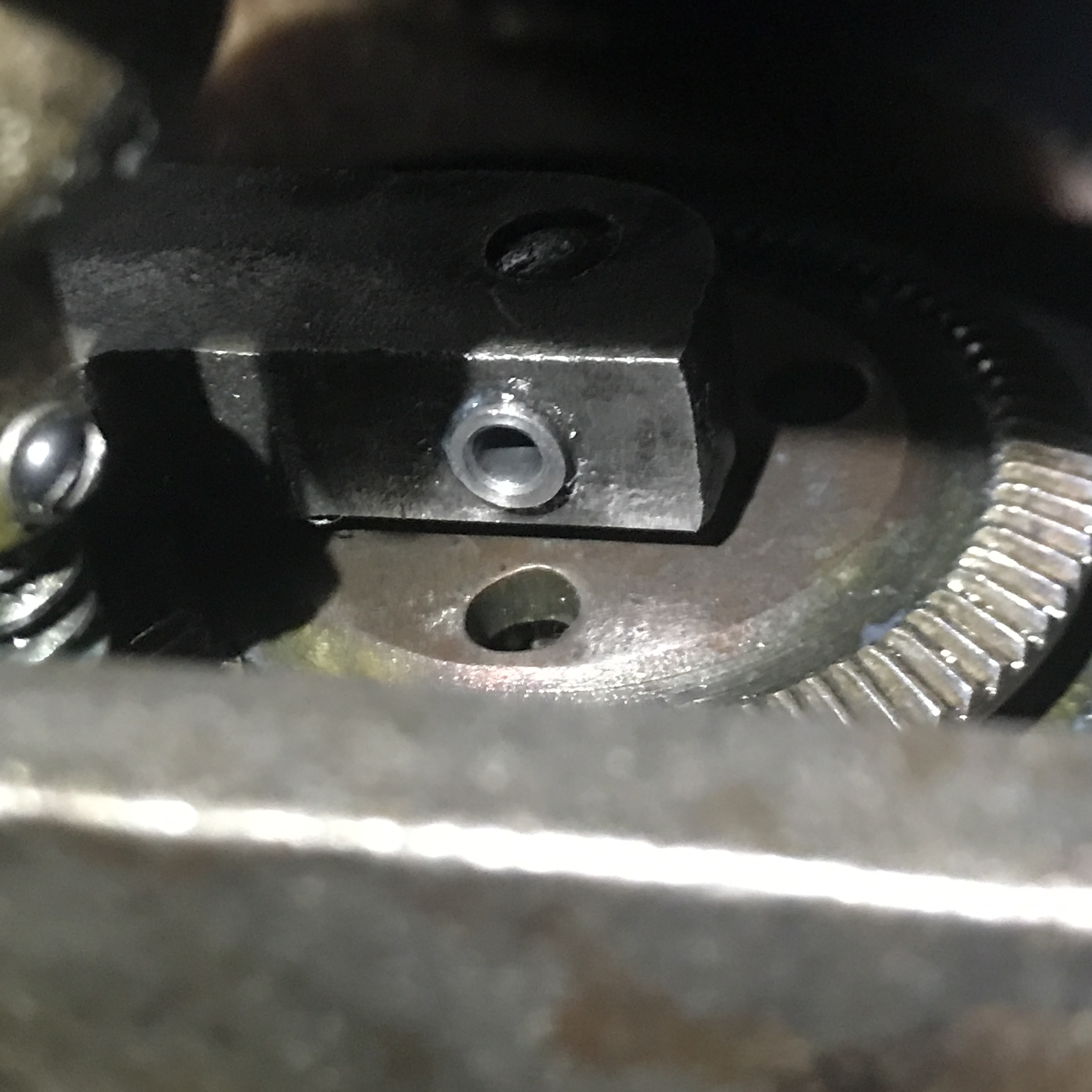 BUT- The picture makes it look like the fiber gear is not pressed tightly against the brass spindle gear. It should mate up tightly to the brass gear. Also-- I can't tell from the pics, but make sure the fiber gear is on correctly. the teeth slant a bit- Could it possiibly be backward?