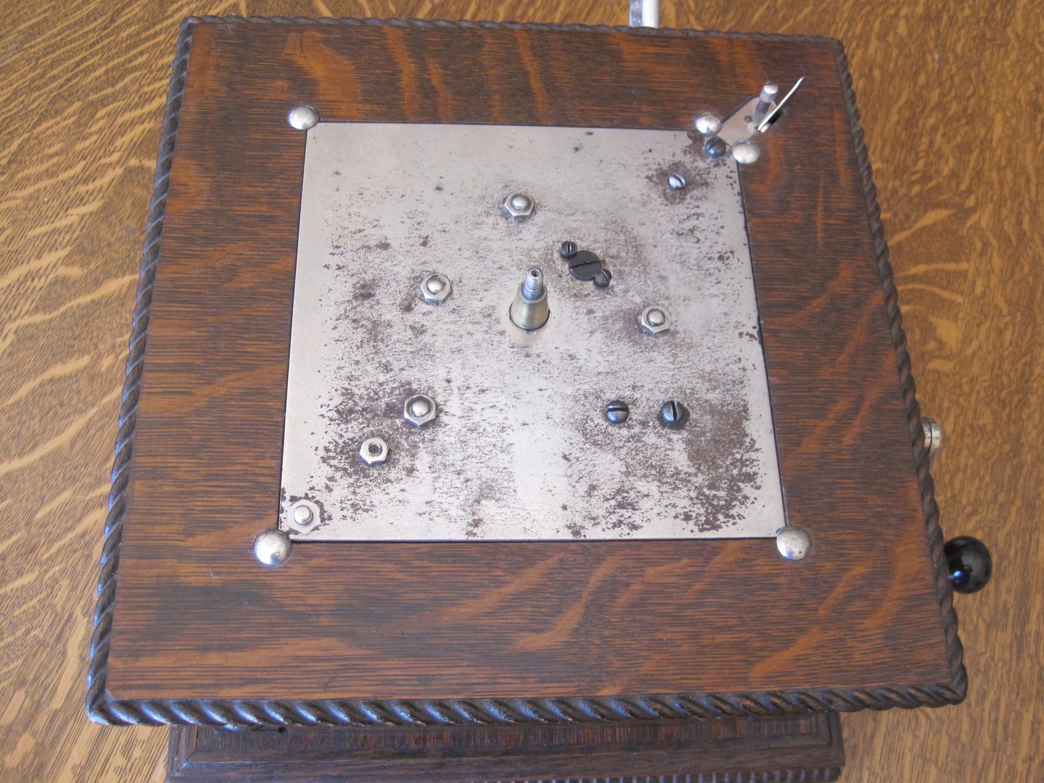 Arms are in excellent condition with no cracks or breaks as is the horn with an unusually straight bell and body with original paint and has its patent imprint. Turn table is also original as is its felt which presents well. Motor bed plate nickel has some loss but is in good condition as is the motor which operates as designed. Note the photos of the motor governor large yoke. There is a crack visible. Have done nothing with regards to this other than leave it alone and enjoy the machine as is. Case finish is excellent with no issues and is all original and with no damage. Original feet still present on the bottom side. Wood graining, pictures speak for this I can’t do any better. The reproducer is original and is the correct early style for this machine and retains its original thumb screw. Some plating loss in areas one would expect but nothing that detracts. Record tie down is also original. Shows some plating loss and the back side felt is not present but at least it’s there and the plating loss is to be expected. Crank is also original. Speed flip lever has been replated at some point in its life. That’s about it. More pictures if needed. Shipping would be in two boxes and transport via USPS. Pick up in person is also an option. Revised the price. Best I will be able to do.