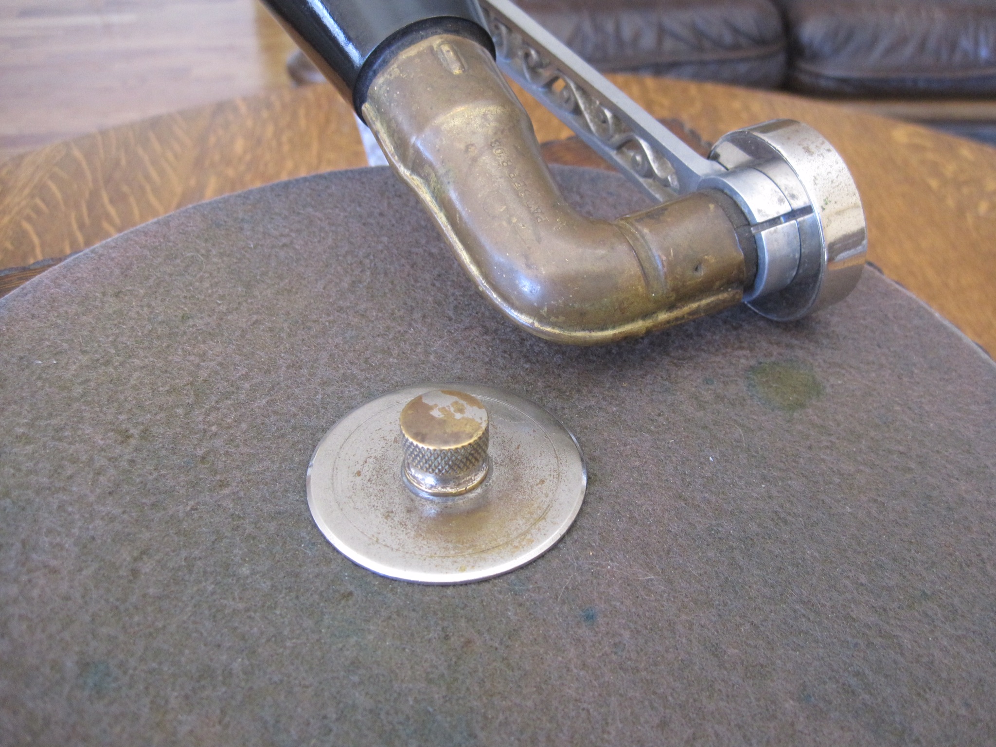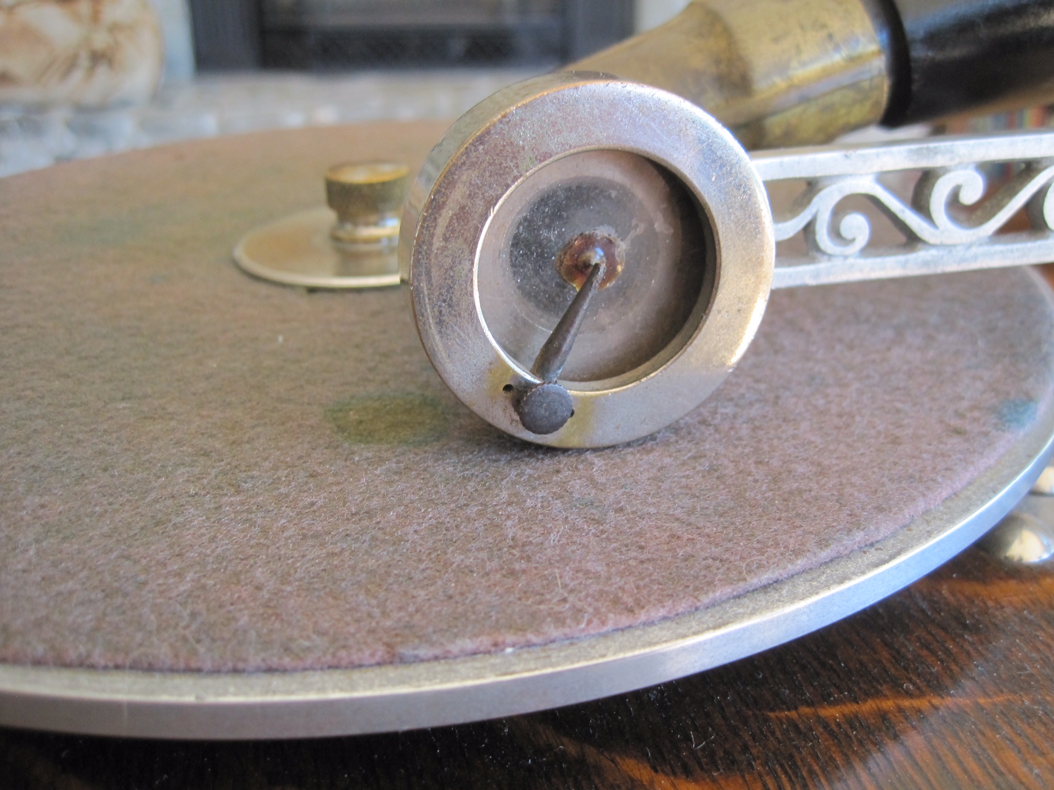 Arms are in excellent condition with no cracks or breaks as is the horn with an unusually straight bell and body with original paint and has its patent imprint. Turn table is also original as is its felt which presents well. Motor bed plate nickel has some loss but is in good condition as is the motor which operates as designed. Note the photos of the motor governor large yoke. There is a crack visible. Have done nothing with regards to this other than leave it alone and enjoy the machine as is. Case finish is excellent with no issues and is all original and with no damage. Original feet still present on the bottom side. Wood graining, pictures speak for this I can’t do any better. The reproducer is original and is the correct early style for this machine and retains its original thumb screw. Some plating loss in areas one would expect but nothing that detracts. Record tie down is also original. Shows some plating loss and the back side felt is not present but at least it’s there and the plating loss is to be expected. Crank is also original. Speed flip lever has been replated at some point in its life. That’s about it. More pictures if needed. Shipping would be in two boxes and transport via USPS. Pick up in person is also an option. Revised the price. Best I will be able to do.