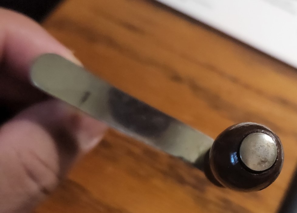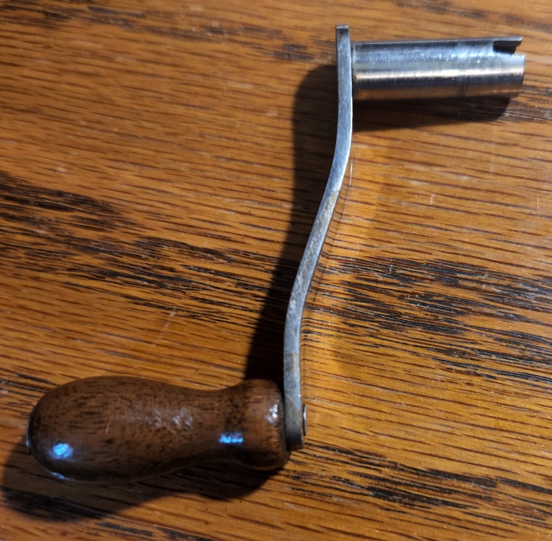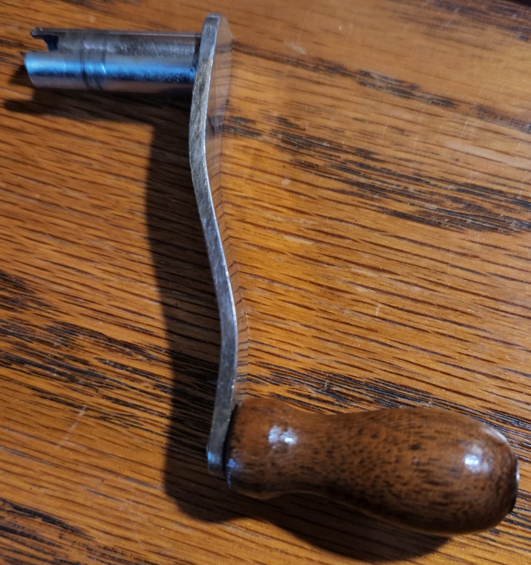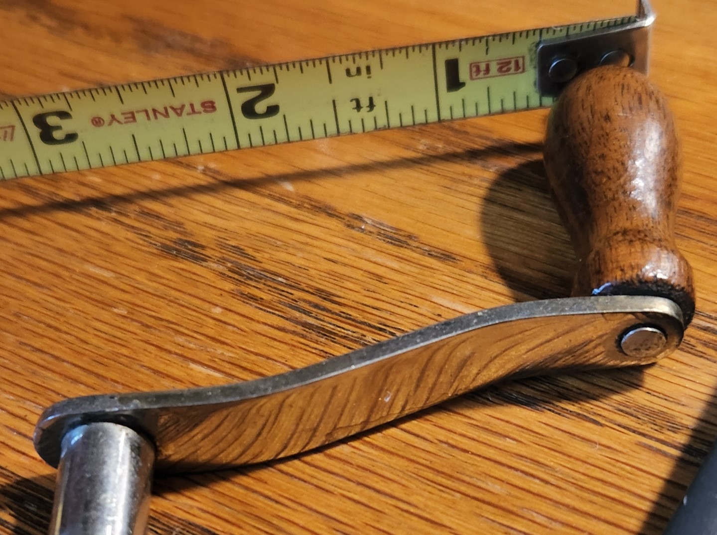 I am offering this reproduction Victor slotted crank for sale. I am not sure what it fits - see pics with measuring tape. It was one of two cranks that came with a Victor Jr. but it is too short to reach the pins on the winding shaft. Maybe it is for a top mount shaft like the early Victor Trademark? You tell me!