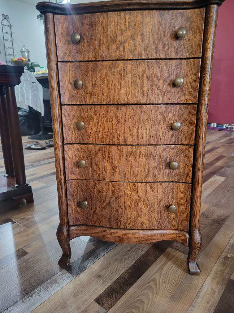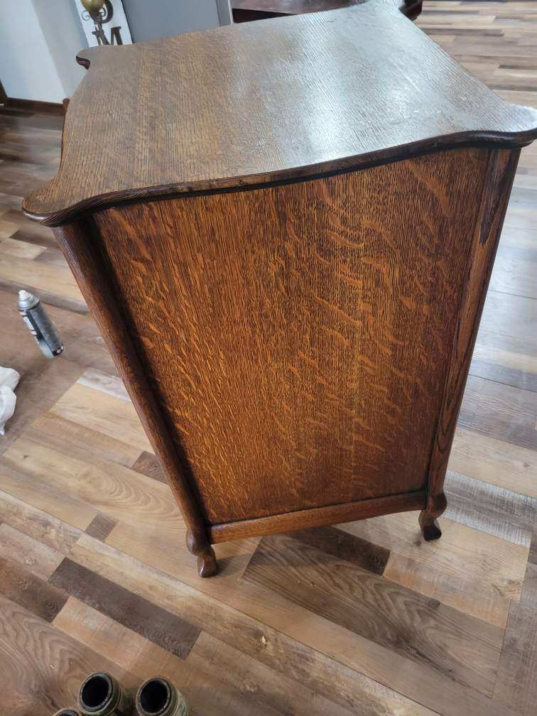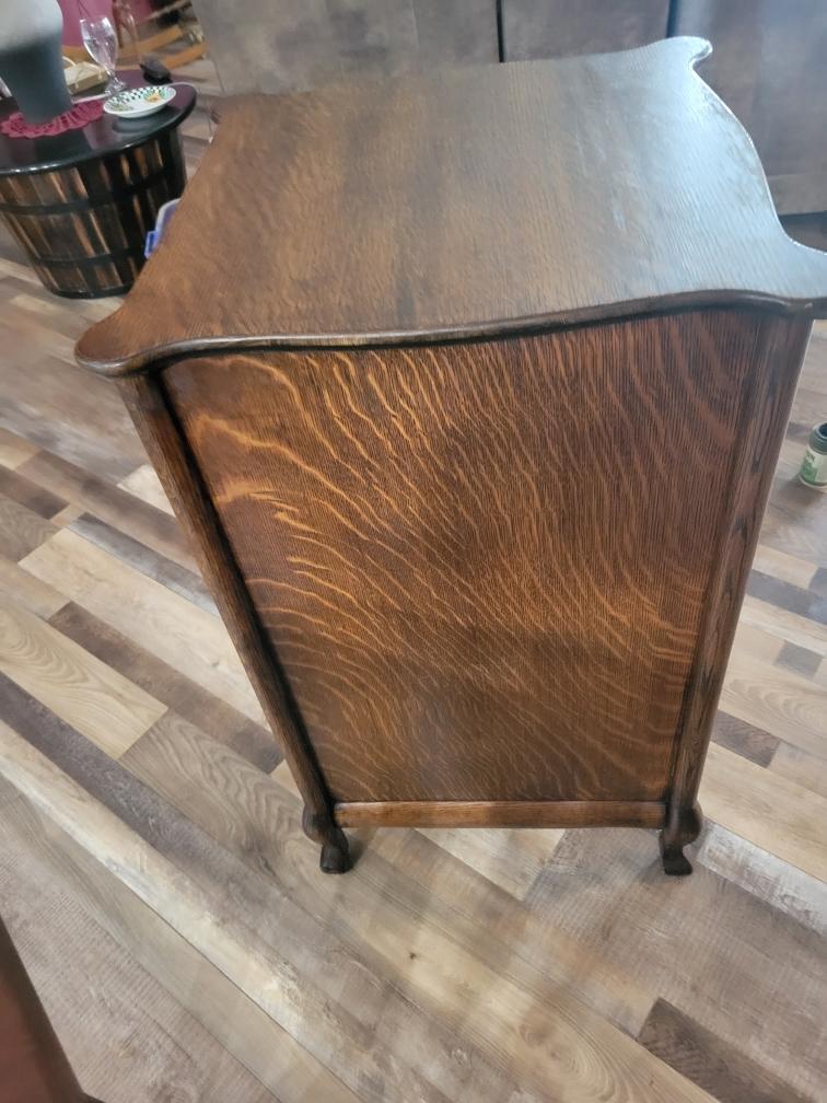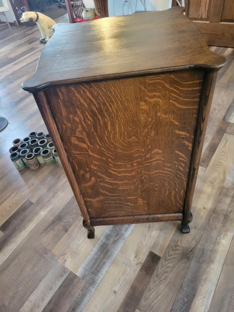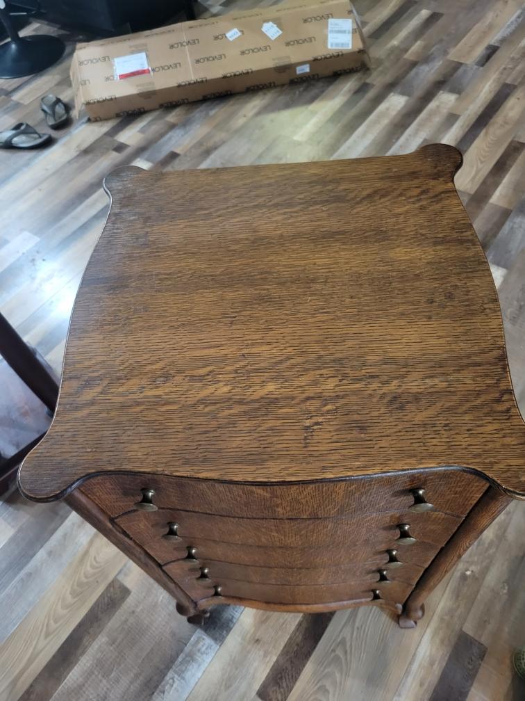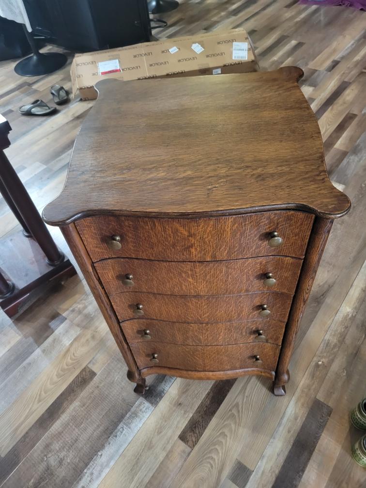 Here is a really nice oak matching Columbia BF cabinet. It has the top 4 drawers for the 4" cylinders and the bottom taller drawer for the 6" cylinders. I suppose a BE would also look nice and match this cabinet. It has all the cylinder holders and is in very nice shape. You just twist the cylinder on the metal holder, and it locks in to the carboard cylinder sleeve. The serpentine top matches the Columbia BF and BE. 600.00. I really do not have a wat to ship this cabinet so, I am willing to work with the buyer. I am located in Iowa. I am going close to Peoria Il. tomorrow, Saturday the 13th. I am from close to Iowa City Iowa. I can store this until the next Chicago show. 600.00 in great original shape. I guess It would be appropriate for the Columbia BFT and BET also. Payment through paypal friends and family. First to post SOLD gets it. Call Tom 641-891-0054