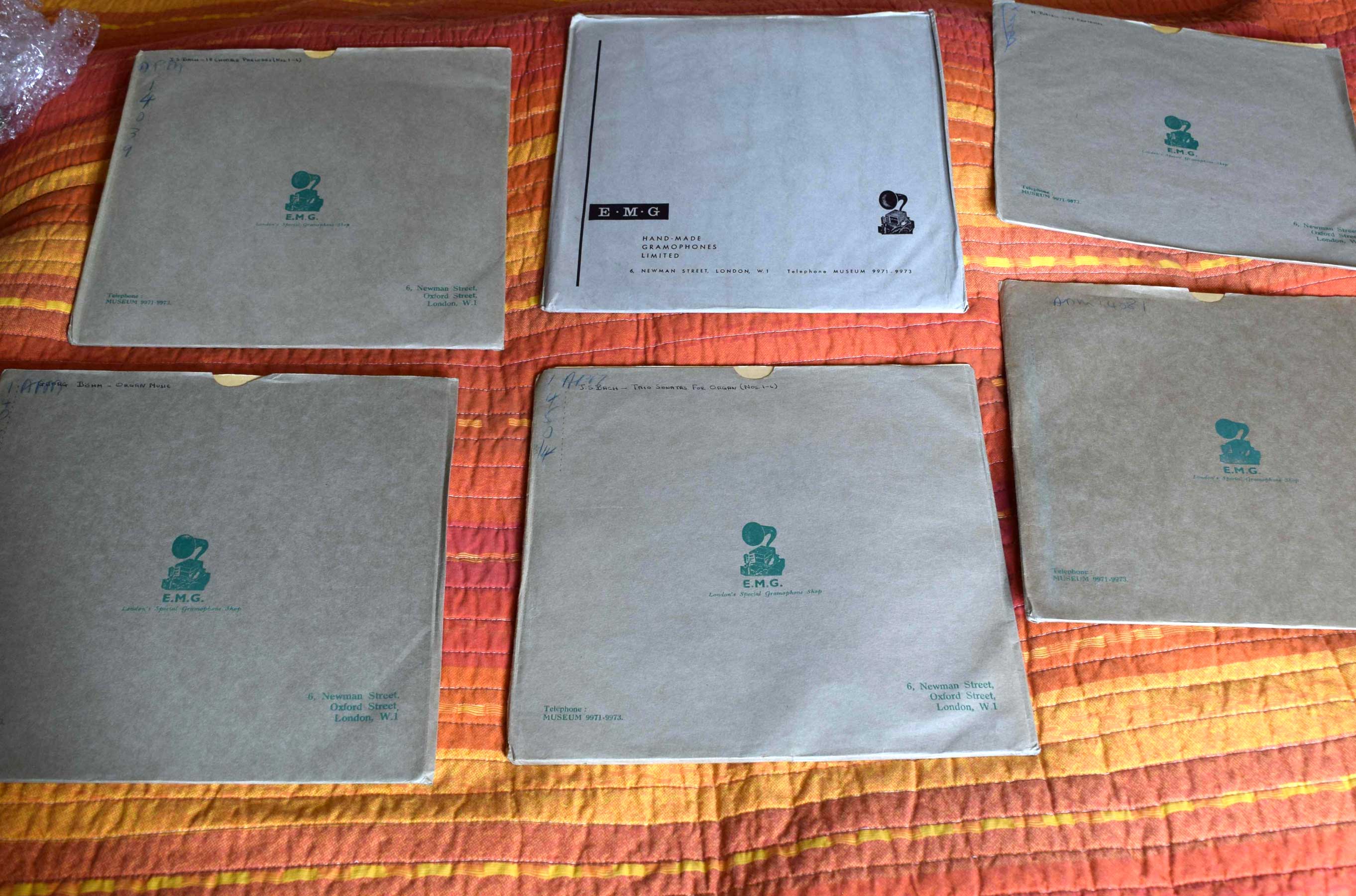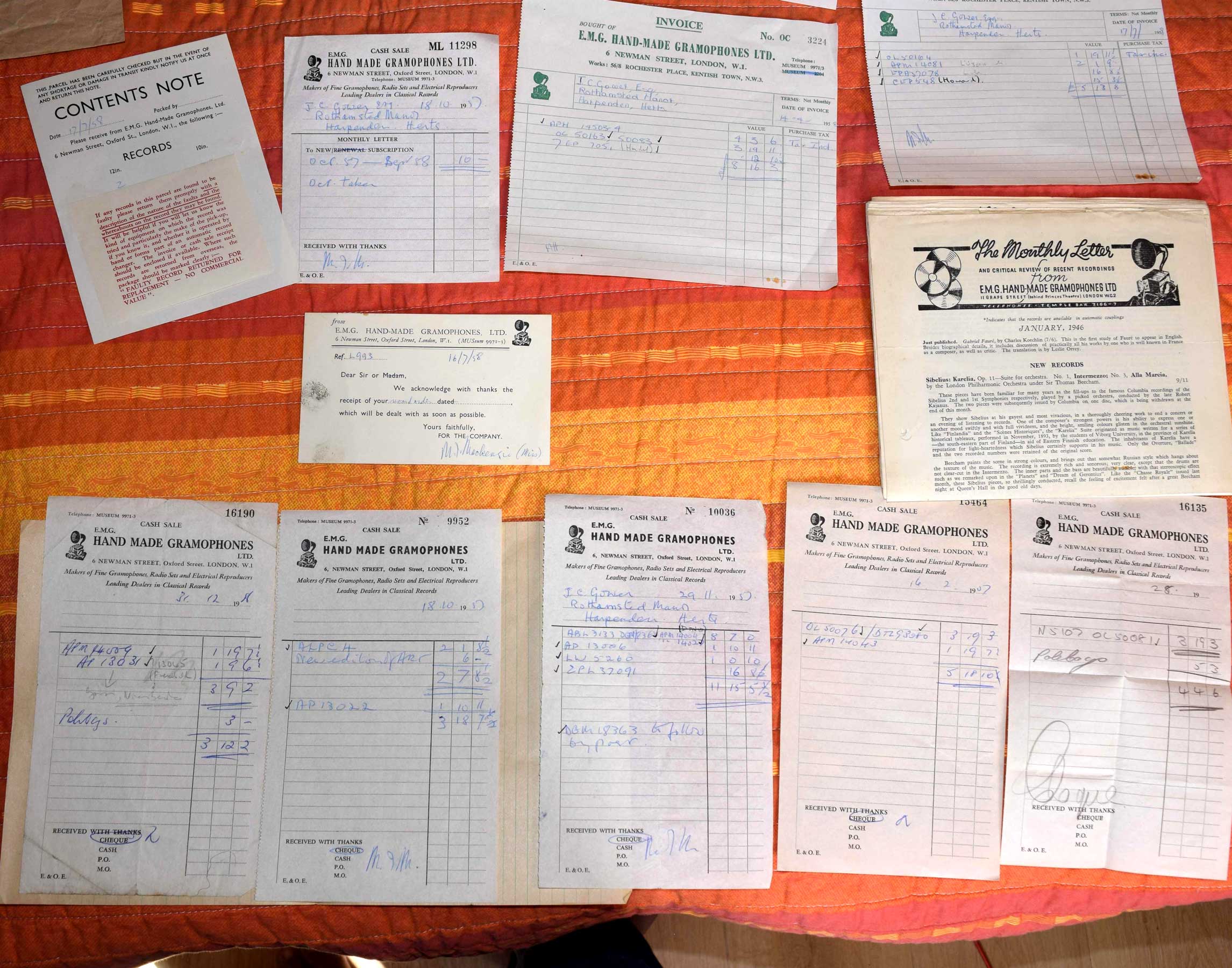 I have an EMG fibre needles supply receipt with addressed envelope from Grape Street (February 1948) and a Gramophone Co receipt for renovation of a gramophone (1926) which I have framed and are two of my favourite collection items.