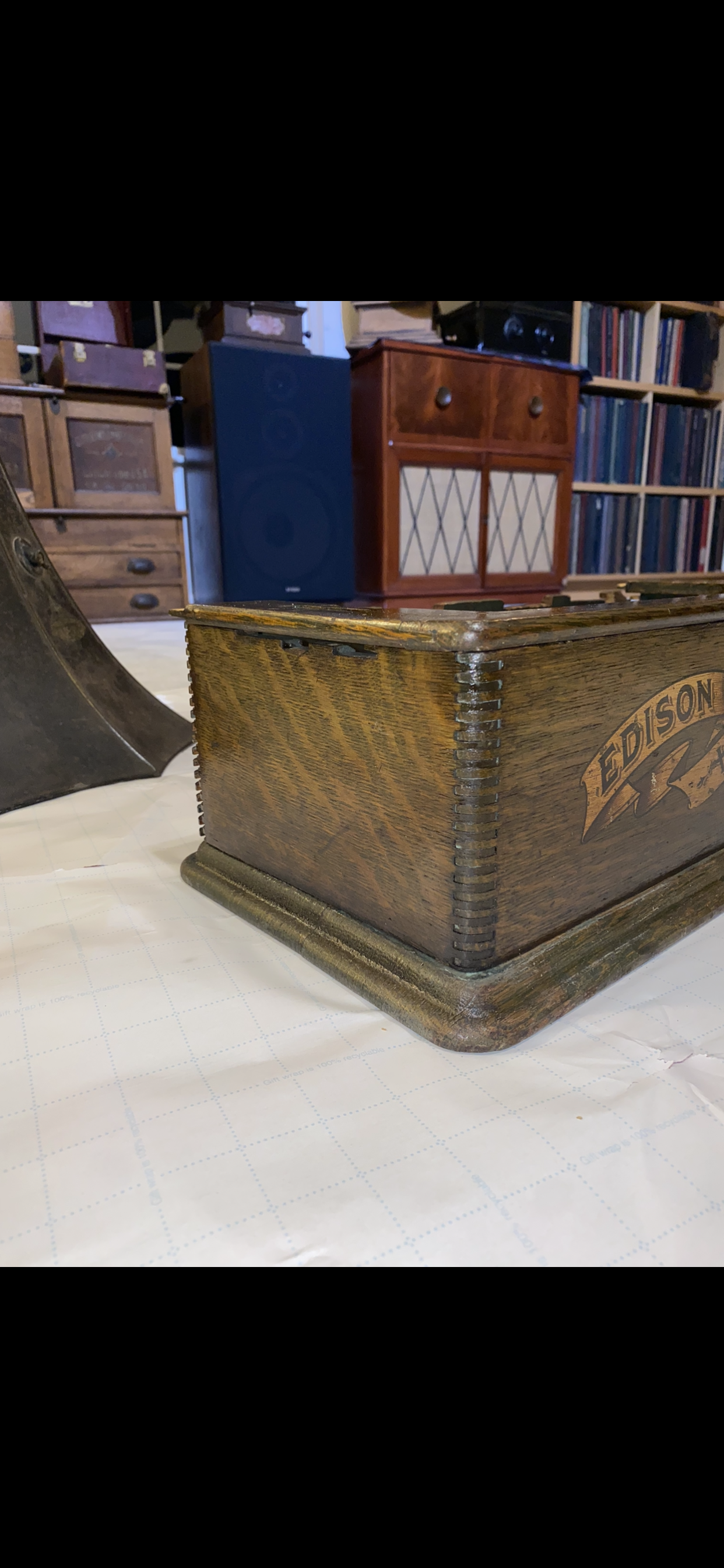I bought the edison cabinet parts from Brad a few weeks ago and started messing around with them this week. I started with the nice banner decal board because I wanted to see if I could restore the finish on it and use it as a display. The finish came right back to life and looked amazing. So I tried the two sides, the back, and the baseboard and everything came out really well. (Also shout out to VanEpsFan1914 for messing around with this last night for me).