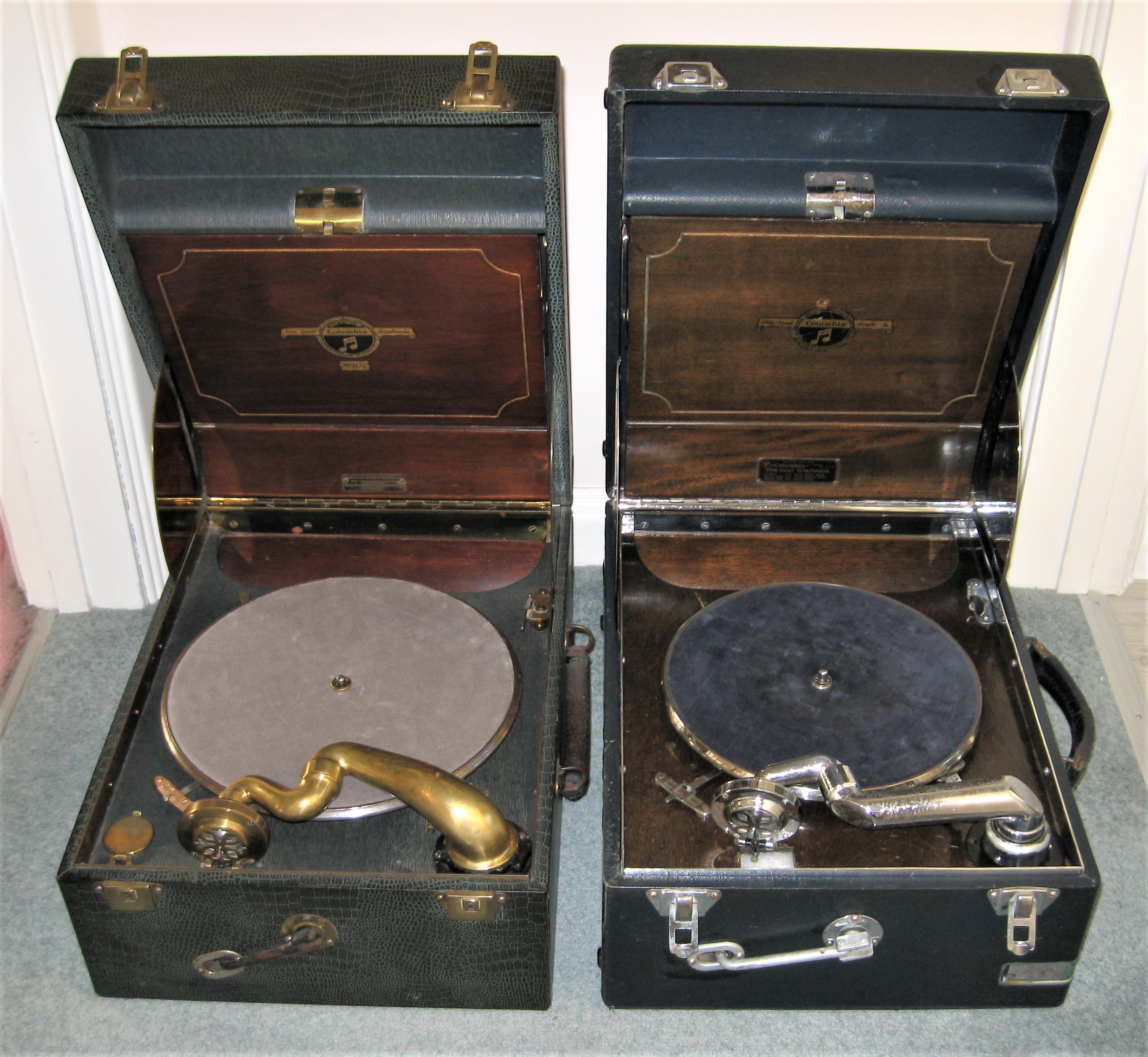 It is too late to rectify the 220's case clasps, as it has been sold and replaced by a much rarer 113 :Phono48 wrote: Wed Aug 24, 2022 1:40 pm Nitpicking, I know, but the 220 on the right has the case clasps the wrong way up! All Columbias with the folding winding handle have the clasps mounted "upside down" so that you don't lose the skin on your knuckles when winding.