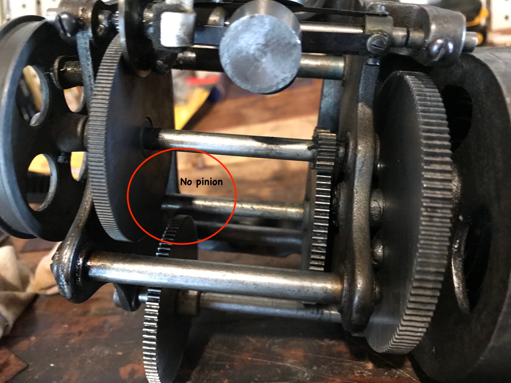 Again thanks. I checked with Brian (The Phonograph Shop) and he has the part. I thought I had a busted mainspring--maybe still do--but I might get lucky. This pinion is a third of the price of a new mainspring.